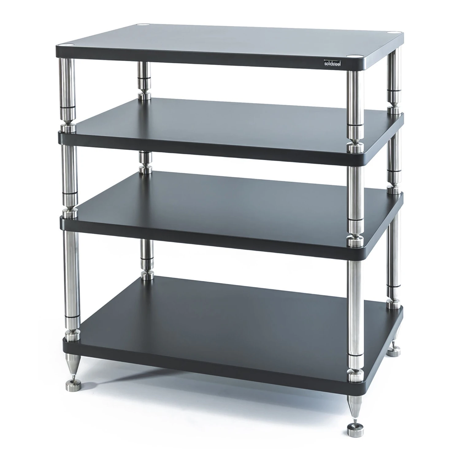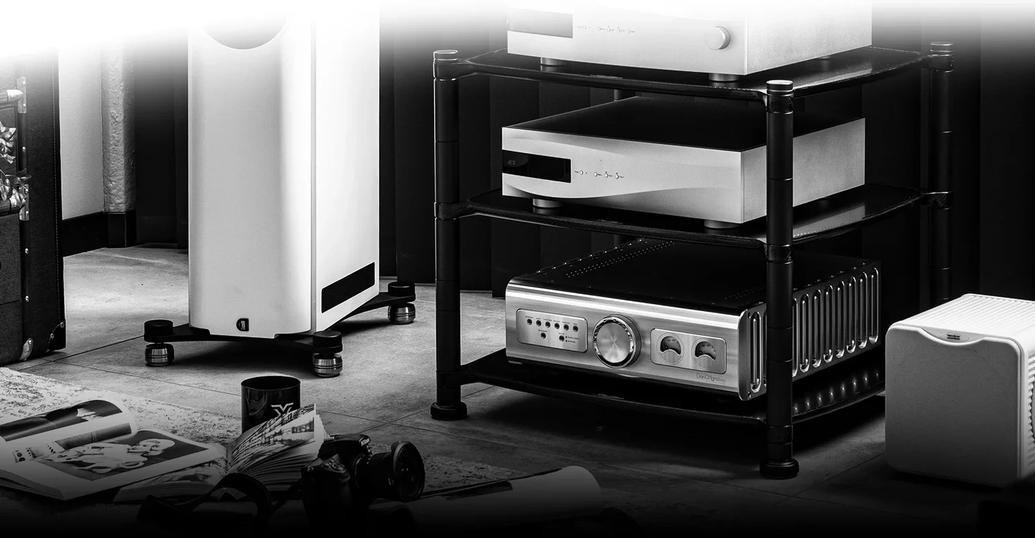 Des plateformes/étagères à isolation intégrée et des cadres usinés limitent la remontée d’énergie structurelle vers les appareils sensibles (lecteur CD, platine). Dans les pièces réverbérantes ou sur planchers légers, une base découplée sous la platine ou une tablette murale dédiée peut encore améliorer l’isolement.
