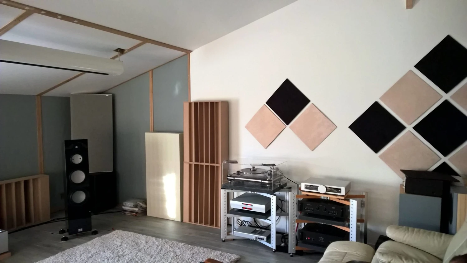 Commencer par une implantation symétrique du système et déterminer une position d’écoute cohérente. Traiter ensuite les premières réflexions par des panneaux à large bande ou un nuage plafond, puis stabiliser le bas du spectre avec des pièges à basses adaptés à la pièce. Introduire la diffusion sur le mur arrière ou en alternance avec l’absorption pour conserver du relief et de l’ampleur.