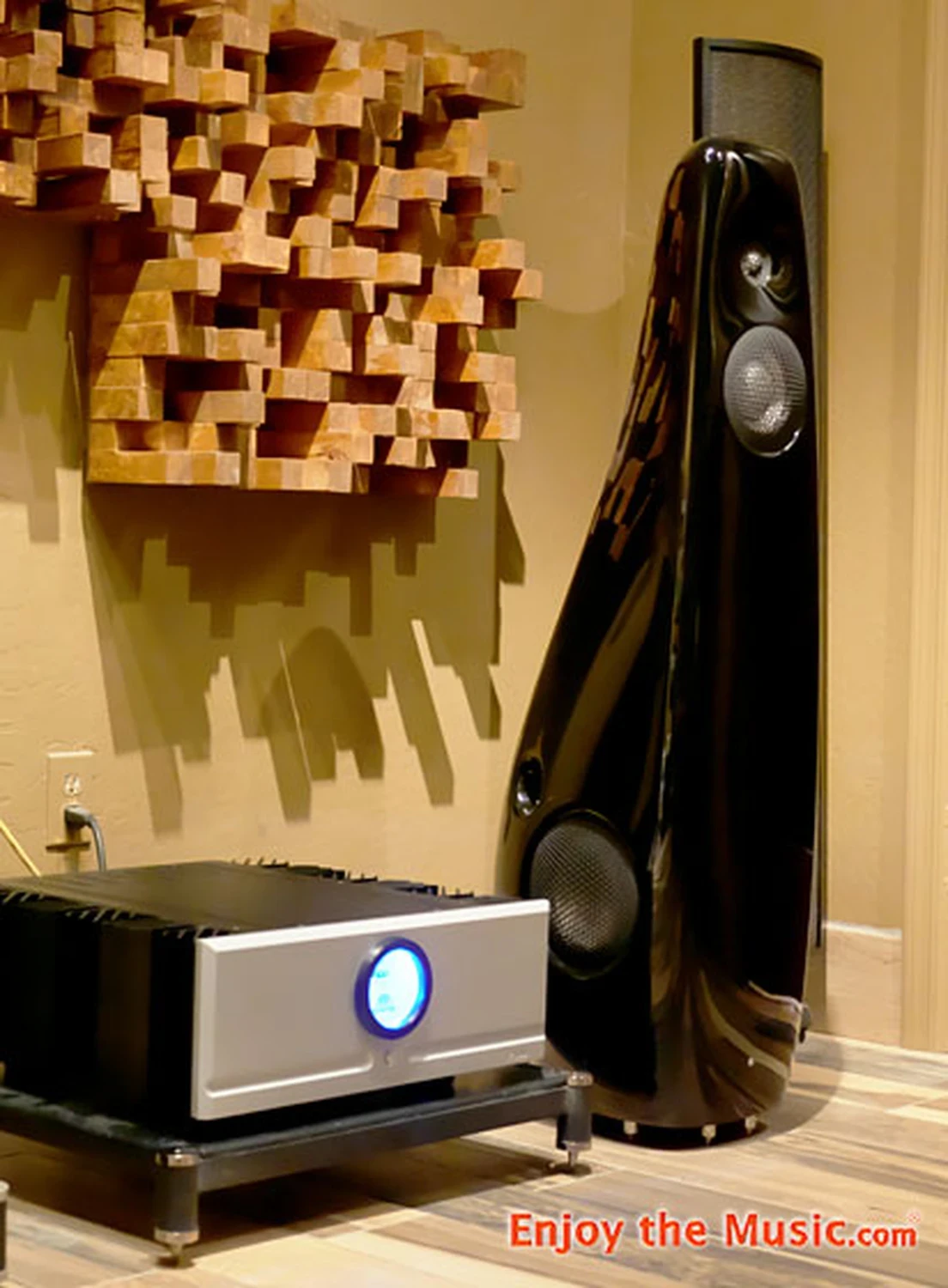 Les haut-parleurs ont été placés à la distance recommandée des murs latéraux (environ trois pieds) et à environ deux pieds de mon mur arrière. Les haut-parleurs ont commencé leur session d’écoute avec un léger angle (comme mes haut-parleurs MartinLogan), mais ont rapidement été placés presque à plat à l’avant. Le placement final était à peine à cinq degrés hors axe. Le triangle recommandé et l’axe croisé ont mieux fonctionné avec la configuration de ma salle audio. La finition des Vivid Audio Kaya 45 était presque parfaite. Les éraflures mineures étaient en bas et hors de vue. Ils offrent d’autres finitions en Pearl et Oyster Matte, mais mes haut-parleurs de test étaient en noir piano. Une variété de couleurs personnalisées est disponible sur demande. Les haut-parleurs Kaya 45 sont pratiquement lisses et sans joint. Les seules lignes droites se trouvent sur le plateau inférieur, avec les bornes de connexion et les pointes. Pour réaliser cet exploit, une quantité vertigineuse de recherches et de technologies est nécessaire, et peut-être un peu de magie ? Cette entreprise innovante, dirigée par l’ingénierie, se vante de technologies telles que les diaphragmes en Catenary Dome Profile, le Tapered Tube Loading, les Super Flux Magnets, le Reaction Cancelling Compliant Mount, et plus encore. L’ensemble de cette critique pourrait être l’exemple d’un article blanc du MIT, et cela pourrait en faire bâiller certains d’entre vous. Laissez-moi résumer.