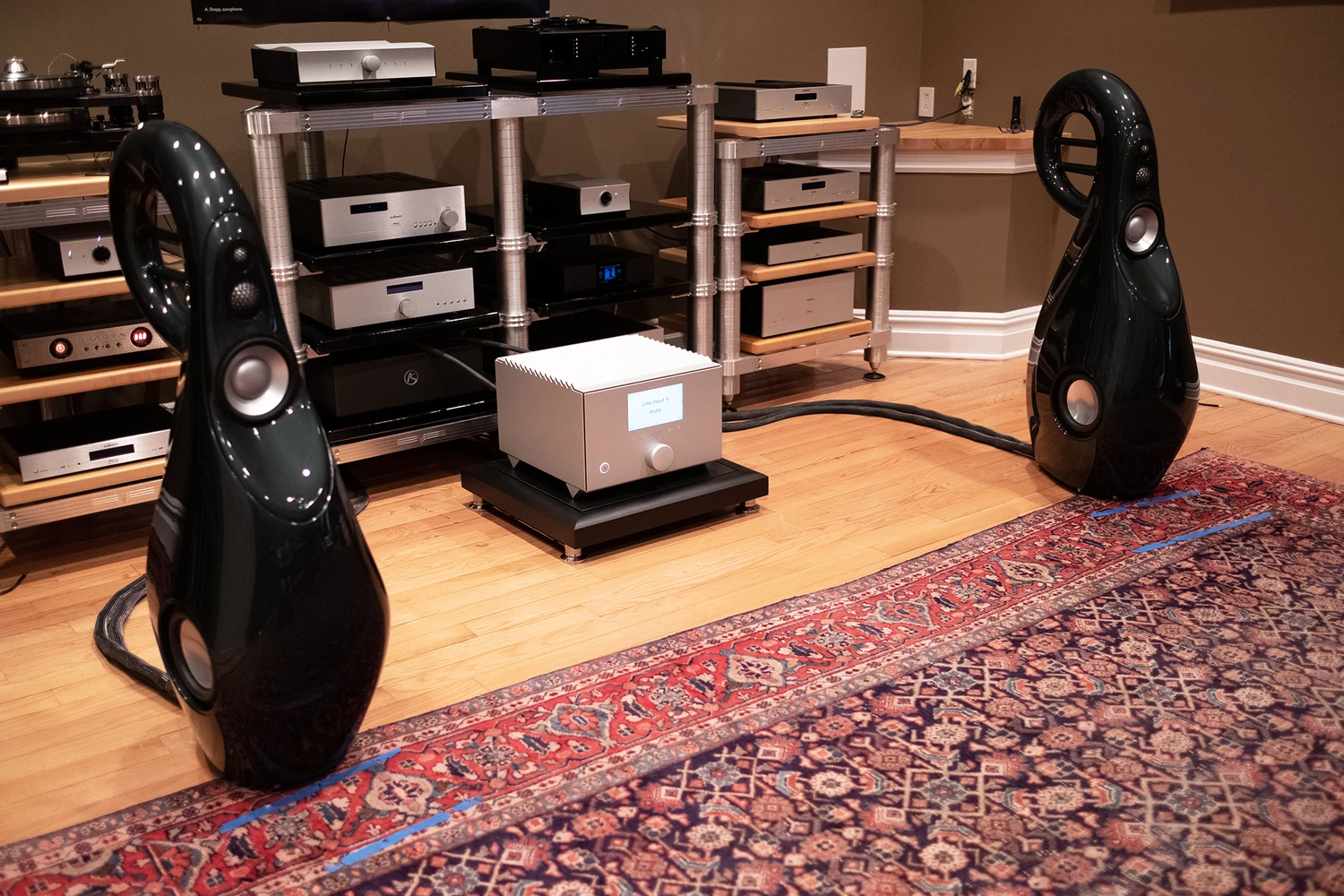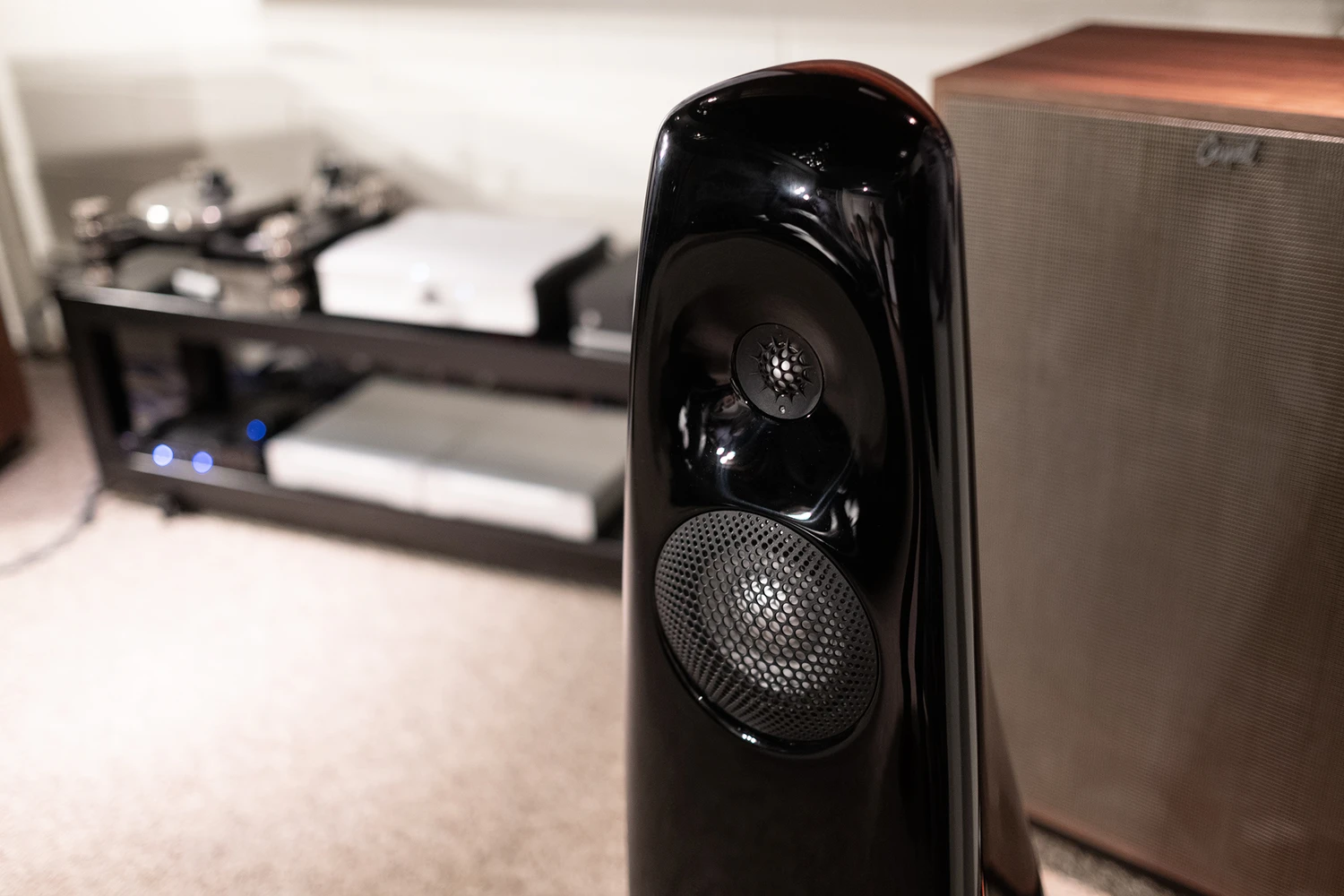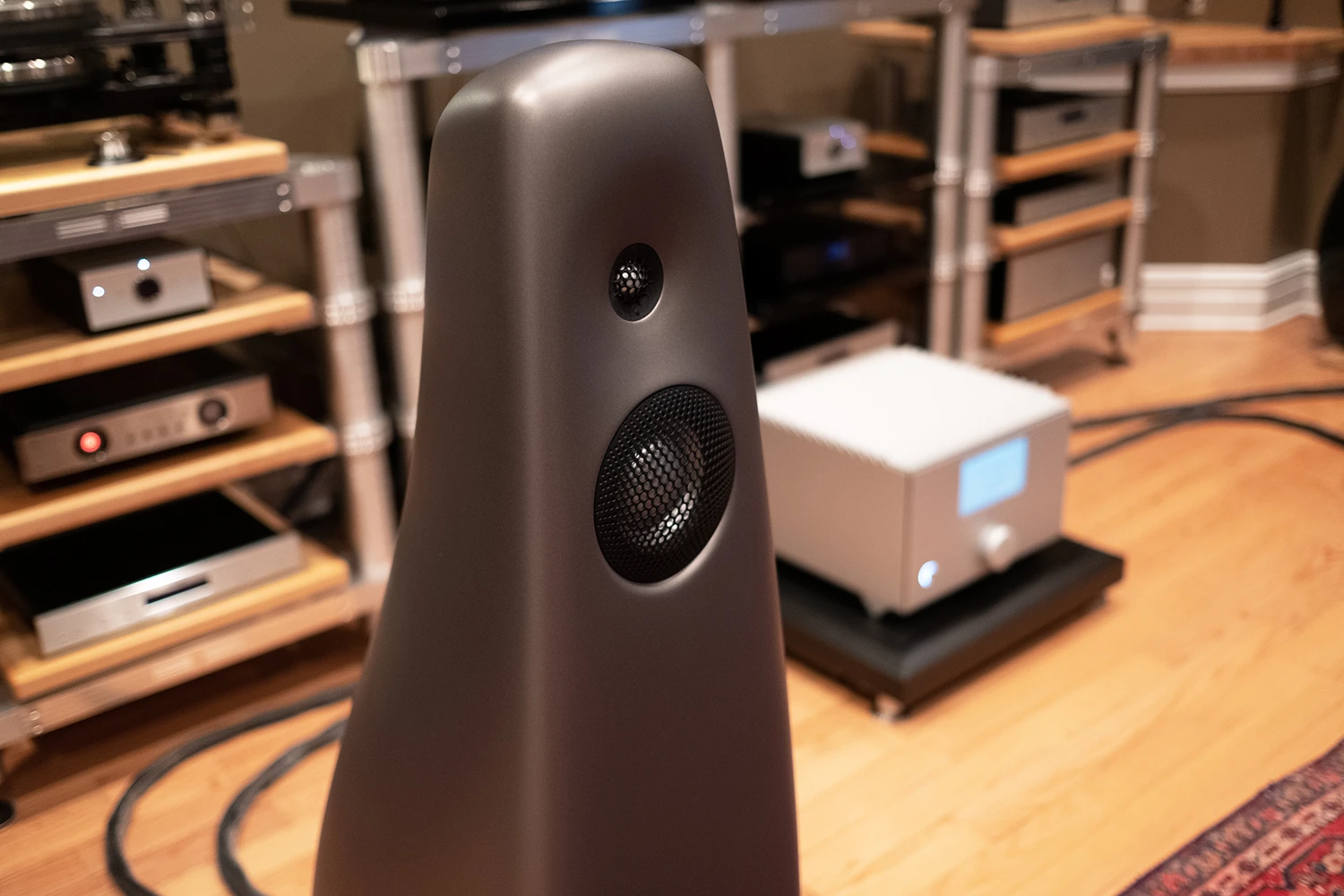 La KAYA K25 est une petite enceinte colonne à deux voies qui abrite le tweeter à dôme en alliage D26 de 26 mm chargé par un tube conique de Vivid, ainsi que le haut-parleur médium/grave à cône en alliage C125D de 125 mm. Avec une réponse en fréquence de 40 à 25 000 Hz (-6 dB), la K25 offre un son très robuste et plein, amplifié par le bel amplificateur intégré Mola Mola Kula que j’ai récemment apprécié, associé au streamer Auralic ARIES G1.1.