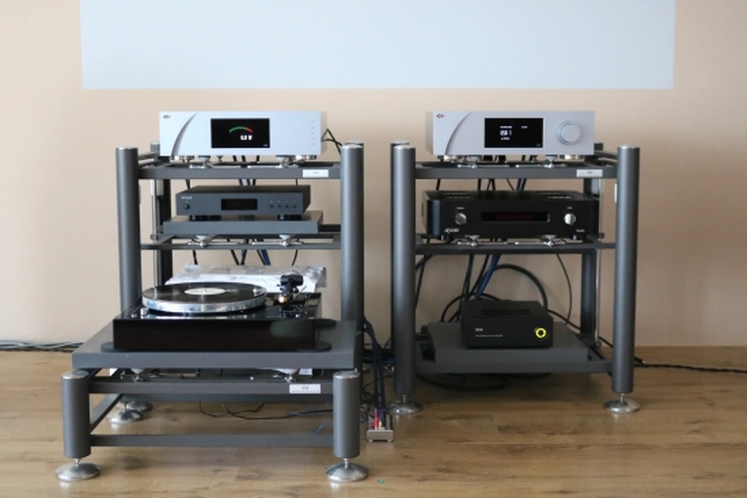 Pour limiter les dépendances au système principal, j’ai refait les tests dans ma deuxième pièce. Ce système change souvent, mais il est actuellement composé d’un AudioAanZee Reference Flow avec Euphony Drive, et de deux DACs : l’Ayon Stealth (avec son étage préampli à tubes) et l’Aqua Formula xHD (associé à l’intégré Line Magnetic LM-88IA en test). Les enceintes sont les Gustavson LS-One.