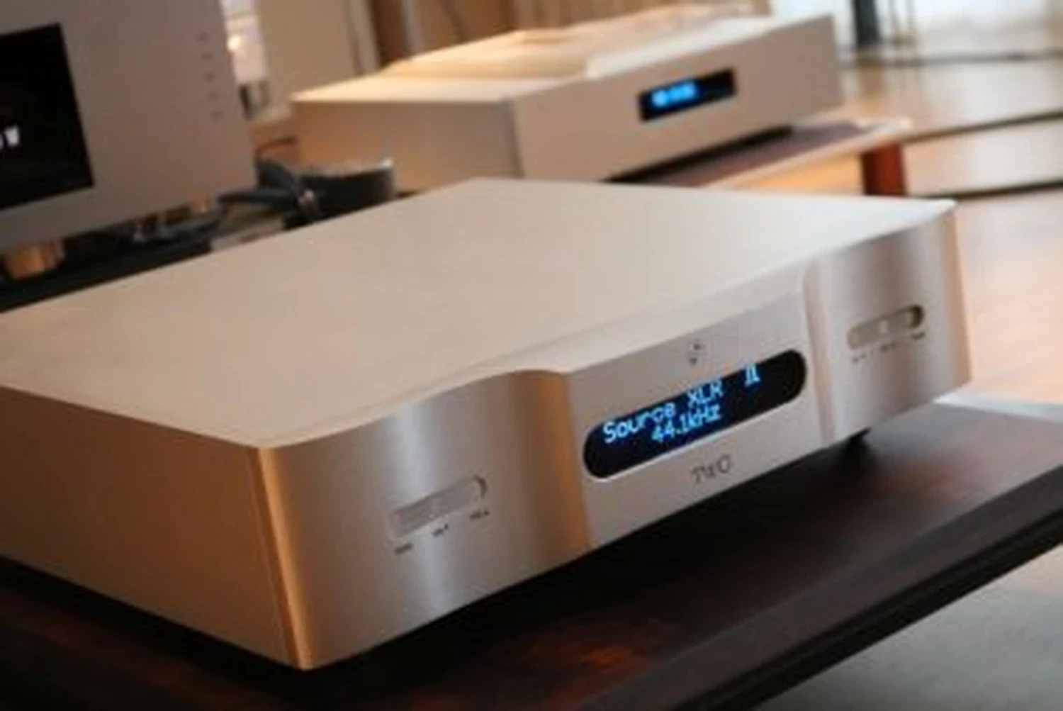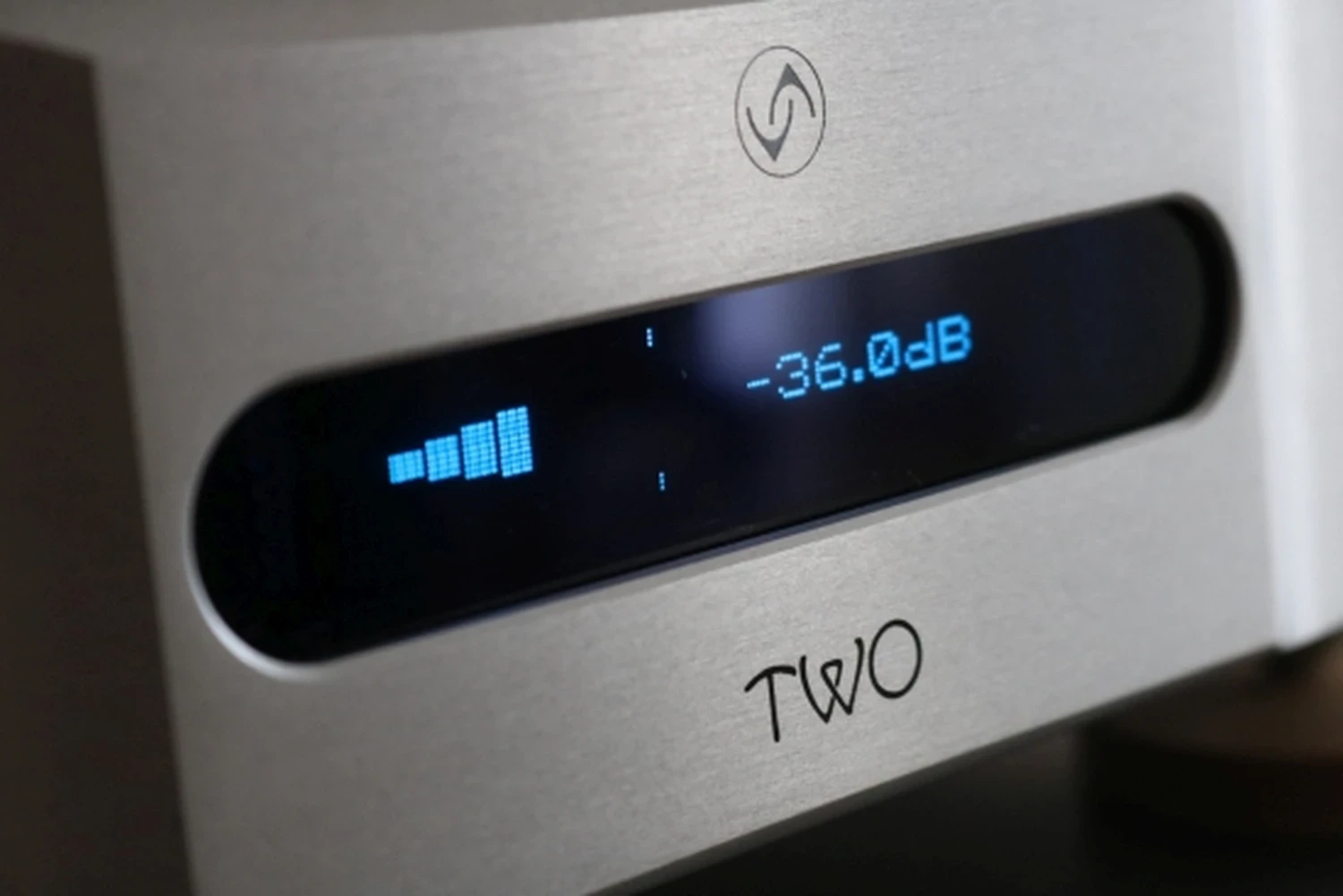 Le TWO a été initialement créé sur la plateforme de l’Audio Aero “LaFontaine”, développée et améliorée de manière drastique. L’équipe de Vermeer a opté pour le “LaFontaine” plutôt que le “LaSource” car le premier contenait les développements technologiques les plus récents. Vermeer désigne le TWO comme un “Centre de Contrôle Universel” car c’est un produit trois-en-un : un préampli analogique, un réseau renderer et un DAC. Il peut être au cœur de systèmes analogiques/numériques multi-sources et peut fonctionner comme l’interface avant intégrée d’un système minimaliste avec seulement un serveur et des enceintes actives. Équipé d’un étage de sortie à tubes avec contrôle de volume et d’équilibre, le TWO peut être connecté directement à un amplificateur de puissance. Il est important de noter que les signaux d’entrée analogiques restent 100 % analogiques. Le volume est contrôlé dans le domaine analogique via un échelon d’atténuation de très haute qualité. Si désiré, le contrôle de volume peut être contourné et sa sortie réglée à un niveau fixe de 2, 3 ou 4 Volts. Pour l’étage à tubes, Vermeer a sélectionné le double triode NOS sub-miniature 6021, qui sont traités cryogéniquement et ensuite directement soudés sur le circuit imprimé pour un contact parfait. L’appareil a un aspect simple mais sophistiqué avec un affichage VFD placé au centre, ornée de trois boutons de chaque côté. Le panneau avant incliné fait que les boutons sont enfoncés à des profondeurs variées, ce qui rend les plus profonds un peu difficiles à presser. Pas que vous utilisiez ces boutons très souvent, cependant, puisque la télécommande absolument magnifique a des boutons pour toutes les fonctionnalités de l’appareil. La plupart des fonctions peuvent également être opérées depuis le panneau avant de l’appareil, mais le passage en mode veille ne peut être fait que depuis la télécommande.