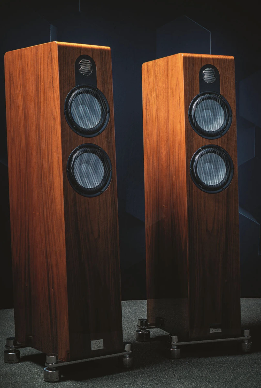 Les isolateurs influencent de manière perceptible le rendu sonore et sont le fruit d’une collaboration entre Marten et le fabricant canadien IsoAcoustics. Il convient également de souligner leur intérêt esthétique : les enceintes y gagnent une allure saisissante et, légèrement surélevées, acquièrent une légèreté visuelle remarquable.
