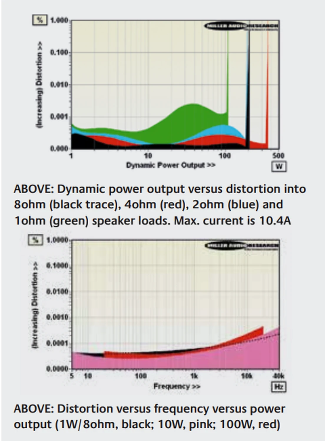 Beaucoup de choses concernant l’Eclipse sont véritablement exceptionnelles, mais elle ne bat pas de records audiophiles en matière de puissance de sortie. Évaluée à 2x180W/8ohm et 2x350W/4ohm, elle atteint 2x210W et 2x370W, respectivement, bien que son comportement de clipping soit très abrupt. Les amplificateurs de classe D et de classe AB à rétroaction élevée présentent généralement ce type de comportement, bien que nous soyons assurés que l’Eclipse n’est ni l’un ni l’autre ! Le clip presque instantané est facilement observé sur le Graphique 1 qui montre les 210W, 371W et 195W « zéro headroom » atteints dans des conditions dynamiques, et les 109W limités en courant autorisés dans 1ohm. Donc, l’Eclipse est suffisamment puissante, mais elle ne donnera pas d’insomnies à D’Agostino, Constellation ou Michi, entre autres. Cependant, ce que le Graphique 1 commence à illustrer (dans les limites d’une acquisition de données de 10 cycles/1kHz) est les niveaux extraordinairement bas de distorsion encourus par l’Eclipse. Le THD est raisonnablement constant avec la puissance de sortie sur la plage de 180W évaluée et est à son plus bas autour de 100Hz à (meilleure situation) 0,00003 %, passant à 0,00004 %/1kHz et 0,00011 %/20kHz. Ce sont, de loin, les niveaux de distorsion les plus bas que j’ai mesurés à partir de n’importe quel amplificateur (et j’en ai testé plus que la plupart en 40 ans !), poussant aux limites du matériel de test et du logiciel de traitement. L’impédance de sortie est phénoménalement basse (« Devialet-low ») à 0,0015ohm (1,5mohm) à travers les basses et médiums, conférant un amortissement exceptionnel, tandis que la réponse est indépendante de la charge ±0,1dB de 20Hz à 20kHz avec des limites de -3dB de 3Hz à 180kHz. Le dernier paramètre, tout aussi étonnant, est le bruit – si bas qu’il atteint un record de 106dB A-wtd S/N (par rapport à 0dBW).