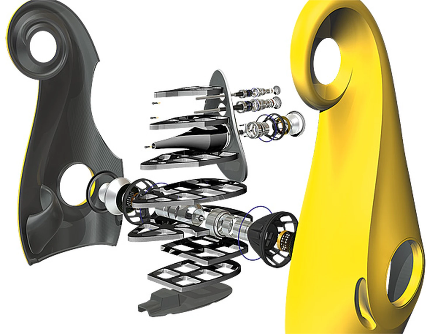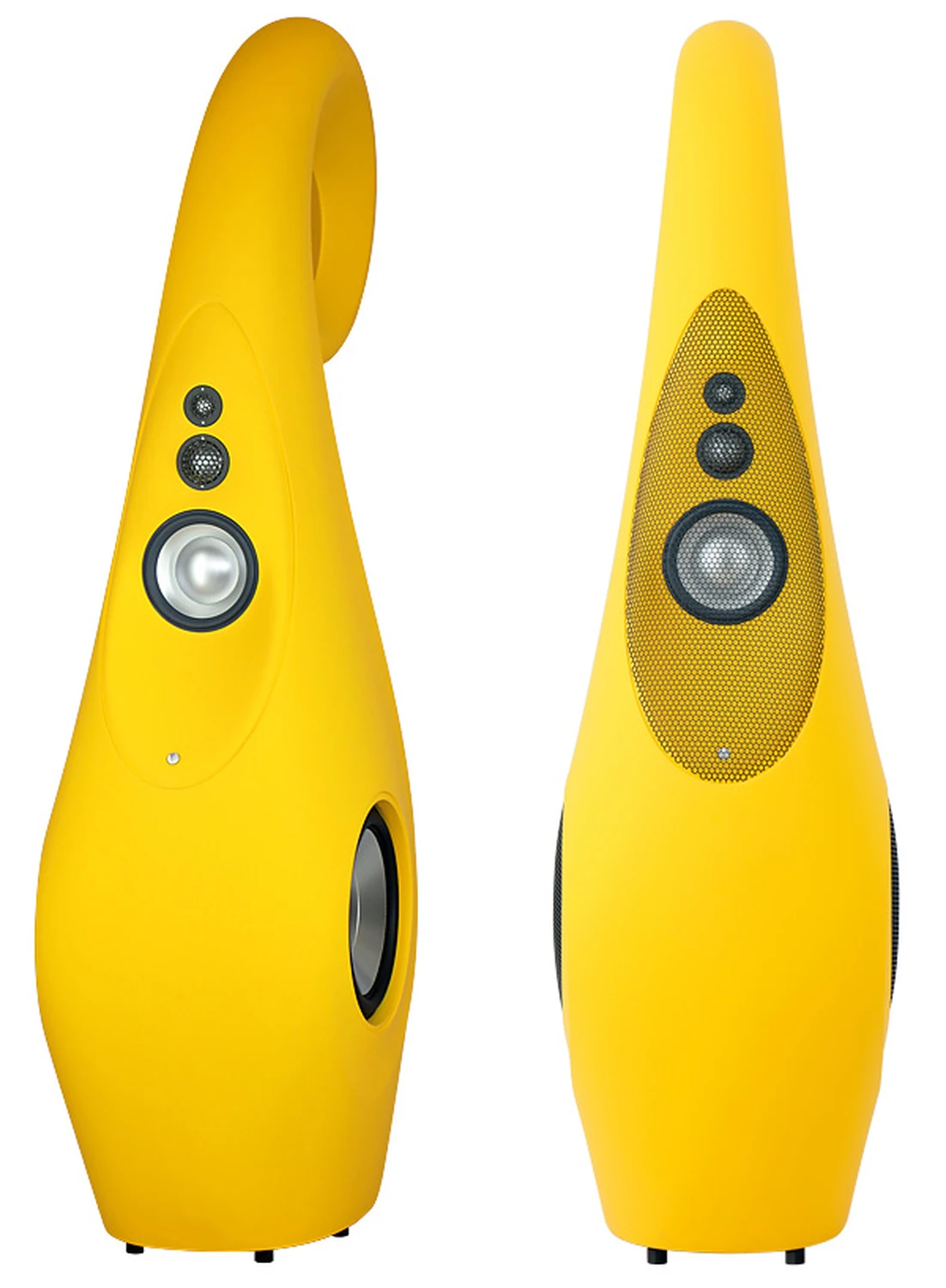 Laurence Dickie, qui a quitté B&W en 1997 pour travailler dans l’audio professionnel, est devenu directeur technique de Vivid Audio en 2004 et a repris là où il s’était arrêté, culminant avec le modèle phare actuel, le Giya G1 Spirit, dont nous parlons ici. Vous pouvez l’acquérir pour 64 000 £ en noir ou en blanc nacré brillant, ou 68 000 £ avec un filtre externe, plus 3 950 £ pour des couleurs personnalisées. Il ne remplace pas le Giya G1 existant, mais se positionne au-dessus de celui-ci, et bien qu’il ressemble beaucoup à son prédécesseur, il est en réalité plus profond et plus court pour maintenir le même volume interne tout en abaissant l’axe du tweeter. Visuellement distinct du Nautilus, le Giya G1 Spirit est néanmoins un autre exemple de la forme suivant la fonction. Oubliez les caissons de type boîte à côtés plats, sujets aux résonances de panneaux et aux effets de diffraction indésirables : il s’agit d’une forme courbée et organique conçue pour être à la fois structurellement rigide et éviter la radiation secondaire des bords de baffle à angle droit. La rigidité est encore renforcée par le sandwich de peaux en GRP avec un cœur en bois de balsa, renforcé à l’intérieur du caisson.