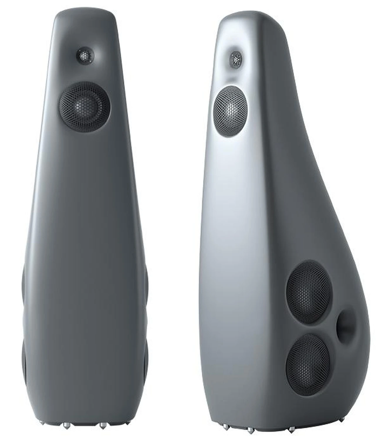 Le tweeter est logé dans une onde de guidage peu profonde pour assurer une transition homogène avec la directivité du médium à la fréquence de coupure. Les grilles magnétiques des médiums et graves sont faciles à retirer. Les finitions standards sont Oyster Matte (gris perle mat), Pearl White (blanc nacré) et Piano Black (noir laqué) – des finitions automobiles personnalisées sont disponibles moyennant 2100 £.