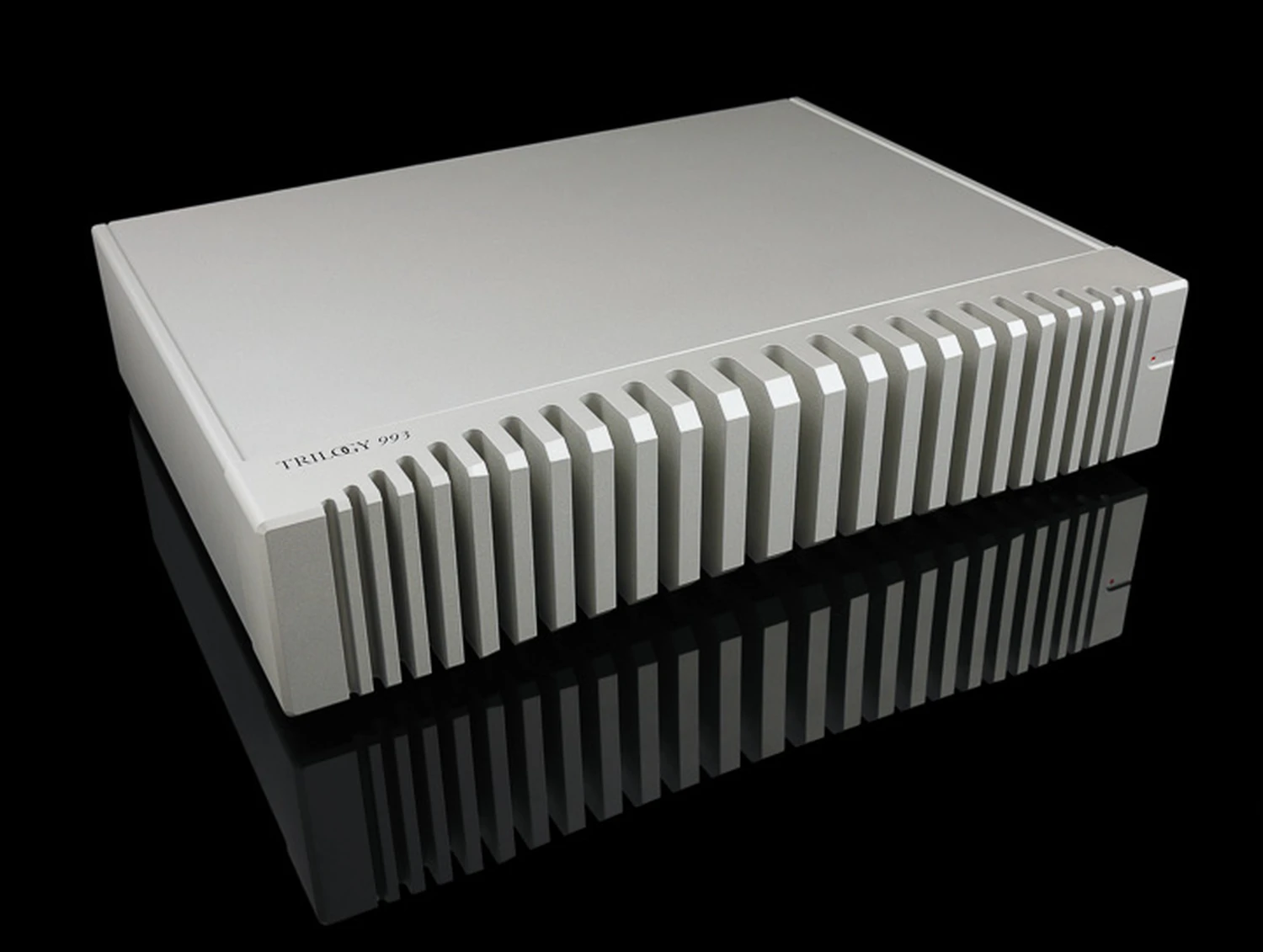L’amplificateur de puissance stéréo 993 est un gros morceau avec des ailettes de refroidissement robustes joliment usinées dans le panneau avant ; la nature épaisse de ces ailettes de refroidissement vise apparemment à éviter la tendance des ailettes extrudées plus fines à vibrer. C’est la première fois que je rencontre cette suggestion, mais si vous passez votre doigt sur la plupart des dissipateurs thermiques, ils résonnent effectivement, il est donc logique d’avoir quelque chose de plus costaud. La même triode double que celle utilisée dans le 903 fournit le gain de tension dans le 993. L’étage de sortie se compose d’un FET qui fournit le premier et le plus crucial Watt, ainsi que de dispositifs bipolaires à plus haute puissance qui fournissent un courant supplémentaire, ce qui en fait un design hybride à plus d’un égard. Les inclinations à lampes de Trilogy se retrouvent également dans l’alimentation à entrée à inductance, une approche que l’on trouve dans certains des amplificateurs de puissance à triodes les plus puissants, qui consiste en un grand transformateur, conçu pour fournir une alimentation en courant plus linéaire au circuit.