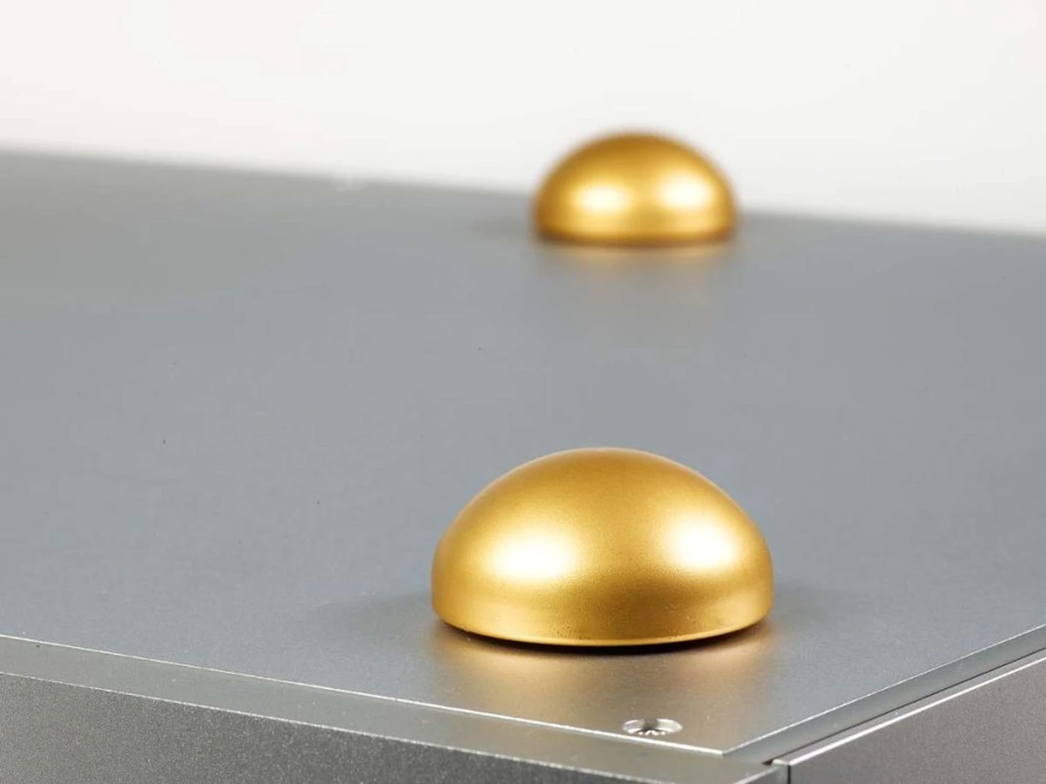 Le préamplificateur Quest et les amplificateurs de puissance mono Rei sont équipés de pieds en laiton massif personnalisés avec un revêtement spécial anti-oxydation.