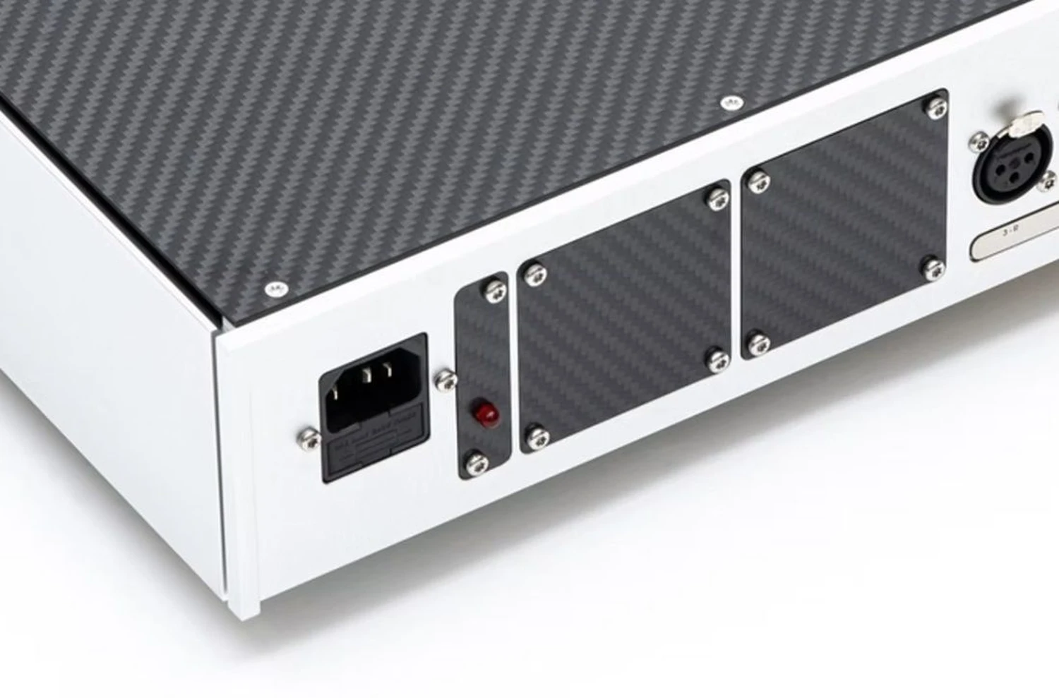 Protéger les signaux fragiles passant par le Quest. De nombreux relais de gestion des signaux disposent d’un mécanisme de démarrage progressif, et des sections à l’intérieur de l’unité sont isolées et compartimentées, garantissant que l’interférence croisée est minimisée. Les clients qui souhaitent le meilleur du meilleur peuvent choisir d’acheter l’option carbone étendue, qui ajoute une couche supplémentaire de blindage en fibre de carbone à l’intérieur de l’unité. Comme on peut le voir sur l’image ci-dessous, ce blindage supplémentaire couvre les sections d’entrée, sortie, volume et alimentation, et il est dit qu’il améliore l’obscurité en arrière-plan, les micro-détails, la texture et l’émotion de la lecture musicale.