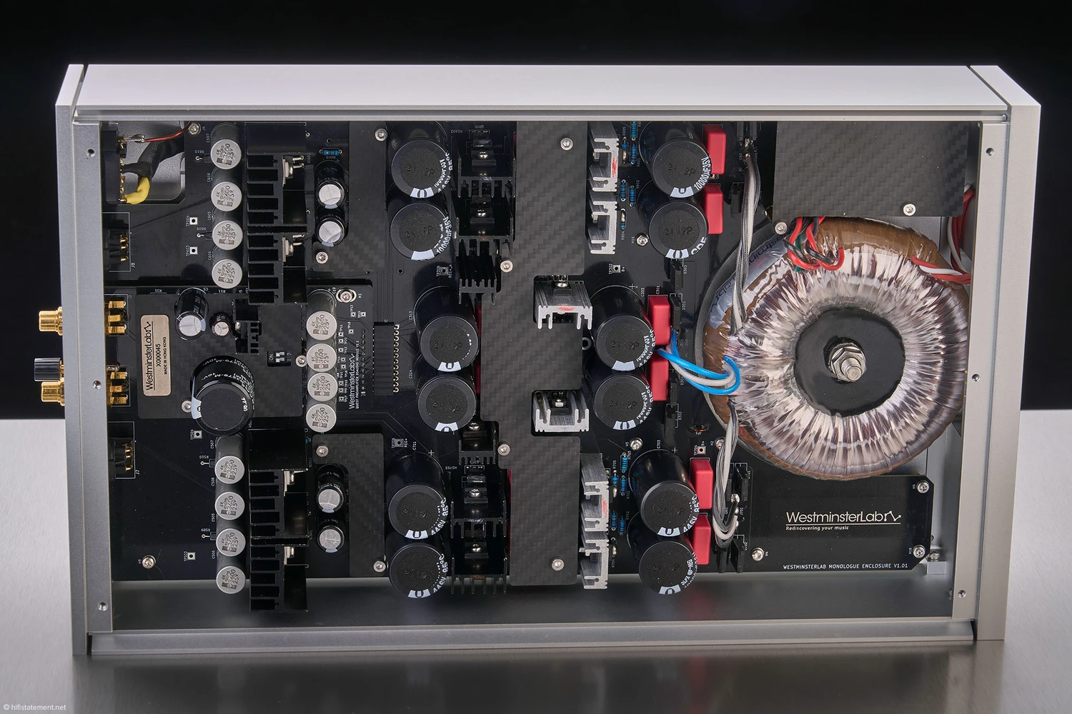 Le circuit imprimé (PCB) est un composant crucial dans les amplificateurs, reliant divers éléments au sein du système. S’il est négligé, il peut devenir le maillon le plus faible. Après des années de tests et de collaboration avec son fournisseur, WestminsterLab a développé un design de PCB idéal avec une couche de cuivre ultra-épaisse et ultra-pure. Selon le fabricant, ce PCB avancé améliore la pureté du signal, la vitesse et la transparence, rivalisant avec le soudage traditionnel point à point.