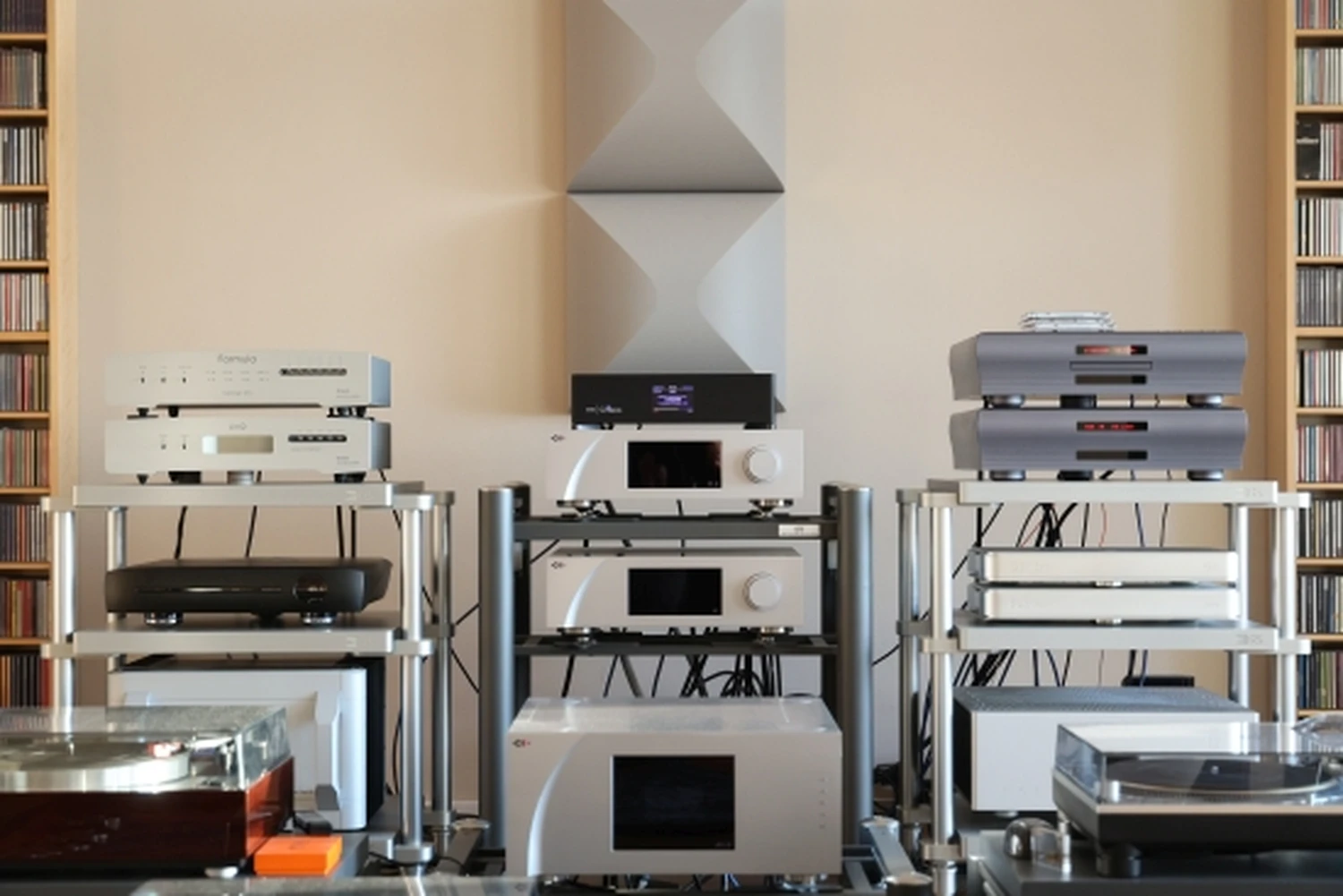 Le système d’écoute de référence comprend un DAC CH Precision C1.2, un préampli CH L1, un ampli de puissance CH A1.5, et des enceintes Magico S1 MkII. Les sources numériques incluent les serveurs musicaux Antipodes K50, Grimm MU1 et Taiko Audio Extreme, ainsi que le transport CD Aqua Diva M2 et l’interface réseau Aqua LinQ.