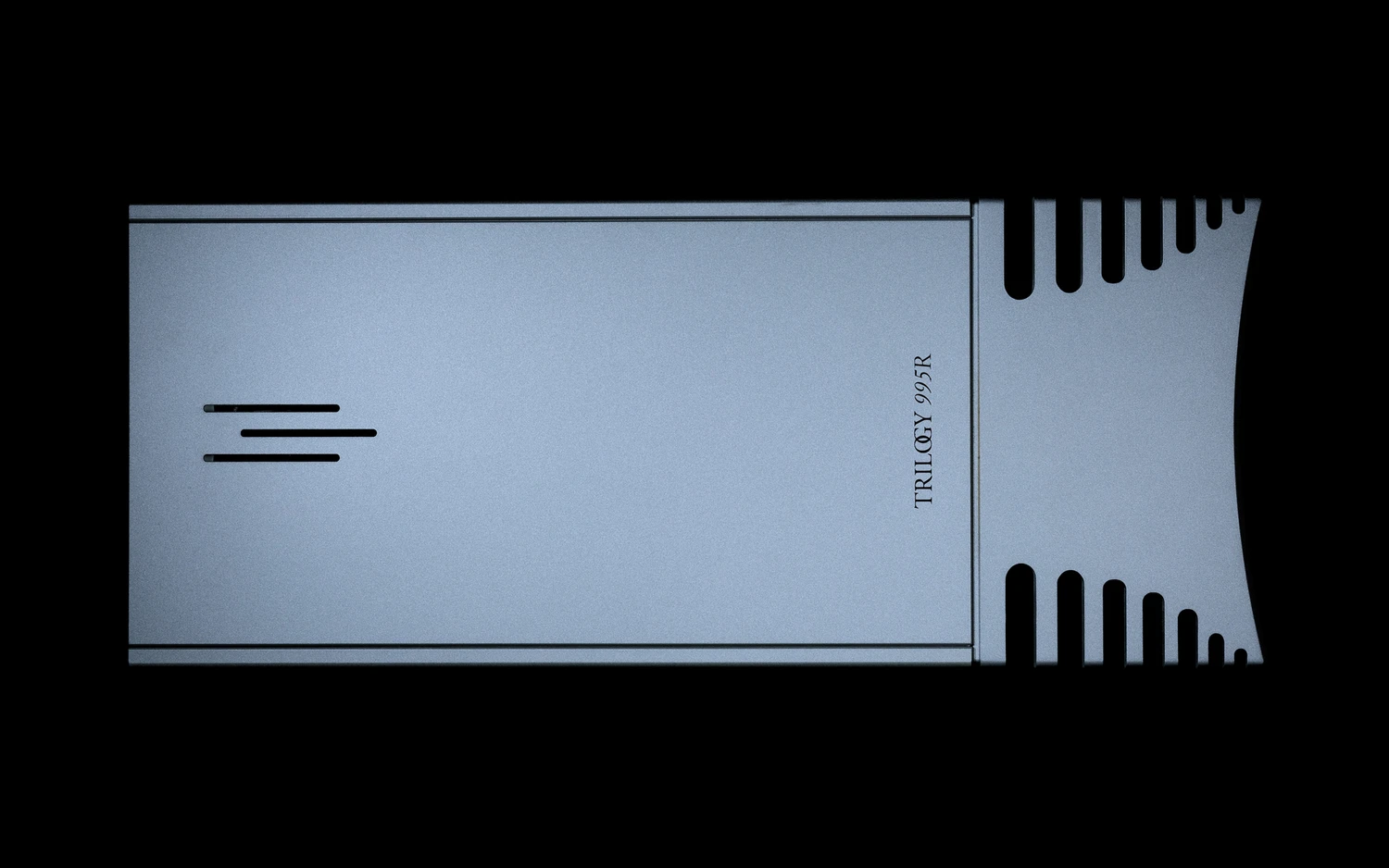Chaque amplificateur mono 995R est arrivé bien calé dans des formes de mousse épaisses dans une grande boîte intérieure à l’intérieur d’un carton extérieur. Bien que substantiel, ce chargement a été intelligemment conçu pour permettre l’extraction du produit d’une seule main. Un cordon d’alimentation ISOL-8 IsoLink Wave (£120) a également été trouvé à l’intérieur, c’est l’autre entreprise de Nic Poulson, axée uniquement sur les composants liés à l’alimentation. Tout comme la plupart des produits Trilogy, le 995R est une machine hybride. Il mesure (L x P x H) 190 x 460 x 350 mm et pèse un solide 38 kilogrammes, donc il est assez compact mais se sent très lourd. Le transporter n’était pas impossible pour moi, bien que cela ait été difficile, cependant il y a une bonne raison à cela. Cet échantillon de classe AB délivre 200W en 8Ω, ce qui n’est pas choquant en soi. Mais son mode alternatif de classe A sort 40W (utilisables 55W) avec la même charge. Tout comme un tel produit devrait le faire, le 995R devient très chaud très rapidement, donc une surface de radiation massive pour dissiper toute la chaleur devait suivre. La réponse en fréquence du britannique est de 5Hz – 100KHz (+/-0.5dB) et le gain sur les entrées SE/équilibrées est respectivement de 31 et 25dB. En raison de son boîtier semblable à une tour, le Trilogy 995R ne ressemble pas à un amplificateur mono régulier mais à un produit de style minimaliste unique, qui n’occupe pas trop d’espace. C’est juste mon avis personnel, mais un tel design épuré est vraiment élégant et impressionnant. Le devant du 995R est épais, légèrement courbé et massif, avec des nervures de différentes épaisseurs sur les côtés. Ce schéma de radiateur, également trouvé sur les modèles Trilogy 925 et 993, est exécuté de cette manière pour augmenter l’efficacité de dissipation. Le petit interrupteur marche/arrêt secondaire trouvé dans une petite dépression à l’avant du produit est voisin de deux diodes ; rouge et bleue. Seule la première est activée si la machine est réglée en classe AB, tandis que le biais de classe A (… ou sa variante « éco » décrite ci-dessous) active la seconde pour avoir les deux allumées. Le logo du fabricant et plusieurs ouvertures se trouvent en haut, et trois petits pieds en tout se trouvent au bas. L’arrière du 995R abrite une paire de bornes de haut-parleur robustes et extrêmement faciles à utiliser de Mundorf. Une petite prise pour connecter la terre externe à gauche laisse penser que nous pourrions voir certains éléments complémentaires à l’avenir. La prise IEC et le disjoncteur trouvés dans cette zone voisinent avec l’interrupteur principal et le réseau propriétaire TASlink de Trilogy basé sur deux RJ45 s’y trouve au-dessus. Un petit bouton juste à côté de cette interface est le sélecteur de mode du 995R, qui permet de faire défiler les trois modes différents de cet amplificateur : classe AB, A et éco A. Ce dernier est un cas de classe A typique lorsque la musique est en marche, cependant le biais du transistor est significativement réduit pour diminuer la consommation d’énergie s’il n’y a pas de signal pendant une minute. Nic a expliqué qu’il a fallu quatre mois de travail pour rendre ce mode opérationnel comme prévu, à savoir stable et sans sacrifice de performance. Enfin, les boutons de sélection d’entrée et de sourdine à proximité des prises XLR et RCA à l’arrière du 995R ont des étiquettes écrites à la fois normalement et à l’envers. Grâce à cette solution astucieuse, il n’était pas nécessaire d’aller derrière le produit pour voir ce qui était actuellement engagé. Le Trilogy 995R est aussi bon à l’intérieur qu’à l’extérieur. Le circuit n’a pas de rétroaction, est entièrement équilibré et son étage de sortie est également ponté. Sa topologie hybride implique deux valves 6H6P comme amplificateurs de tension, tandis que de petits MOSFET linéaires en service avec 12 bipolaires japonais forment l’étage de composition push-pull du produit. L’alimentation, basée sur un grand transformateur toroïdal et des condensateurs fabriqués exclusivement pour Trilogy, bénéficie d’une alimentation à entrée de choke complète.