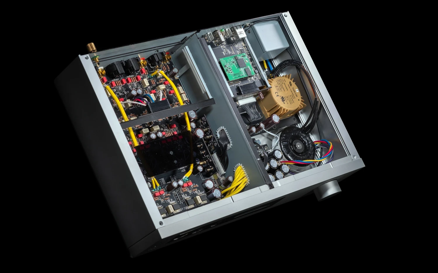 Le colis sous forme de carton suspectement compact contenait un boîtier de vol premium capable de résister à presque tous les types de dommages que je pouvais imaginer. Le plat principal à l’intérieur de son intérieur en mousse découpée avec précision était parfaitement sécurisé. Des compartiments séparés stockaient un dongle sans fil et une télécommande en aluminium robuste avec des boutons de veille, de sourdine, d’information, de diminution, de source haut/bas et de volume +/-, tous agréablement cliquants et très réactifs. Tant la télécommande que le boîtier inclus dans l’ensemble d’aujourd’hui étaient des accessoires luxueux sur mesure généralement vus bien au-dessus de son étiquette de prix, donc des ajouts admirables et non moins. Le COS Engineering D10 en tant que dispositif DAC/préampli/plateforme audio se vend pour 4 500 €, et les options de streaming/phono pour respectivement 900/700 € supplémentaires. L’appareil en prêt tel que testé demanderait donc 5 400 € avant tous les frais locaux. Puisque Srajan avait toutes les réponses dans sa critique du D10, il n’était pas nécessaire pour moi de poser des questions spécifiques. De son écriture, nous apprenons que ce produit n’était pas destiné à être un D1 simplifié, mais un design avec des sonorités poussées plus loin et un coût de fabrication optimisé pour un prix de vente inférieur. Cela nous rappelle à quel point le fabuleux châssis entièrement en aluminium usiné CNC du D1 était un gouffre financier. Bien qu’extérieurement similaire, le corps du D10 présente des plaques d’acier pour réduire efficacement son coût de 60 % avec des rejets déjà inclus, et son circuit est également 20 % moins coûteux à fabriquer par rapport au D1. Inutile de dire que six ans étaient un temps suffisamment long pour que ses créateurs apprennent une ou deux choses sur l’efficacité des coûts. Les dimensions du produit de ce rapport (L x H x P) sont de 415 x 100 x 280 mm et pèse 10 kg, ce qui en fait un produit de taille standard et agréablement léger à manipuler. Un coup d’œil rapide suffit pour reconnaître un design COS minimaliste et élégant très similaire à celui de son frère D1 en termes d’esthétique et de taille. Bien que mon appareil de prêt soit en argent pour faciliter les prises de vue, il peut être commandé entièrement en noir. À l’avant, le logo COS se trouve à gauche et un grand panneau brillant juste à côté abrite 2 x XLR/6,3 mm combo outs ainsi qu’une prise XLR 4 broches au milieu. Toutes ces sorties pour casque côtoient un œil IR et un écran OLED qui affiche le volume (de -63,5 dB à +6 dB), l’entrée, le taux d’échantillonnage, le verrouillage du signal et l’activation/désactivation du tampon numérique. Sa résolution a été mise à jour de manière suffisamment significative (de 128×64 dans les produits précédents de COS à 256×64 maintenant) pour fournir une lecture sans pixel de loin. Un grand bouton de volume situé plus à droite permet de faire défiler les entrées lorsqu’il est pressé et émet un bruit agréablement cliquetant lorsqu’il est tourné. Des biseaux distinctifs sur le bord inférieur ont trouvé leur place sur l’avant du D10 ainsi que sur ses deux côtés, ce qui donne un aspect plutôt agréable à mon avis. Plusieurs ouvertures sur son capot forment le logo COS et fournissent une ventilation supplémentaire. Il est assez fin et maintenu en place par une seule vis, donc il vibre un peu. Si je devais acheter un D10 pour moi-même, je mettrais probablement deux fines bandes de ruban sous les deux côtés de son capot et considérerais cela comme suffisant. Le produit repose sur quatre pieds en aluminium assez hauts avec des rondelles en caoutchouc et son dessous présente plusieurs ouvertures de ventilation. L’extrémité arrière abrite une prise IEC avec l’interrupteur principal et un fusible auto-remplaçable. Les entrées numériques juste en dessous comprennent une de chaque I2S via HDMI, Toslink, BNC, AES/EBU et USB2.0 asynchrone. Les taux d’échantillonnage pris en charge sont de 24 bits/192 kHz PCM et DSD256 via USB, tandis que les entrées restantes vont jusqu’à DSD64. Le bouton situé dans la zone numérique active/désactive manuellement le tampon numérique propriétaire de COS Engineering. La partie I/O analogique plus à droite abrite une entrée RCA et XLR ainsi que le même nombre de sorties. L’arrière standard du D10, juste au-dessus des suspects numériques/analogiques habituels, présenterait deux plaques amovibles avec des emplacements pour accueillir des modules à glisser conformes achetés séparément. Le compartiment de mon appareil de prêt pour son module phono était vide, mais l’autre contenait un module de streaming optionnel 10/100 Base-T installé. Ce complément pratique prend en charge UPnP/DLNA et WiFi, communique avec Tidal, Deezer, Spotify et Quobuz, est compatible avec Roon et suffisamment puissant pour effectuer le décodage complet de MQA sans rendu. Le fabricant liste mconnect Player comme une application gratuite de choix pour les appareils iOS et Android, mais la liste des logiciels viables ne s’arrête pas là. Bien que je dépende exclusivement de la musique stockée sur le SSD de mon fidata, le D10 avait son streamer engagé presque en permanence et fonctionnait parfaitement avec ce transport. Chez moi, il a en fait si bien fonctionné que je ne me soucierais pas d’un produit externe ayant des fonctionnalités similaires. S’il était acheté séparément, le module streamer optionnel du D10 peut être facilement installé à la maison, donc un grand avantage. Je ne peux également pas me plaindre du comportement général de mon appareil de prêt. Il était stable, silencieux, très réactif et chaud en fonction, mais pas brûlant. Je réfléchirais à l’inclusion d’une option pour assombrir complètement son a