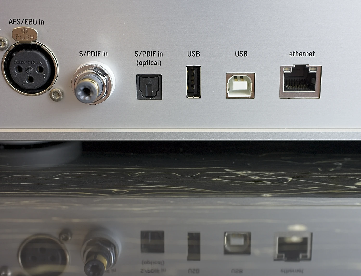 RT et RJ-45 permettent une communication UPnP/DLNA via Ethernet. En plus des entrées numériques, il y a deux sorties analogiques, une équilibrée (XLR) et une non équilibrée (RCA). Fait intéressant, chacune de ces dernières peut être utilisée comme sortie casque, bien que cela nécessite une terminaison de câble spécial pour casque (ou un adaptateur) et la sélection de « casque » (par opposition à « haut-parleur ») dans le menu, ce dernier étant utilisé lorsque le DAC est connecté aux entrées d’un préamplificateur, amplificateur intégré ou amplificateur de puissance. L’ensemble des connecteurs est complété par une prise d’alimentation IEC standard. L’appareil est disponible en finition argentée ou noire et repose sur quatre pieds anti-vibration.