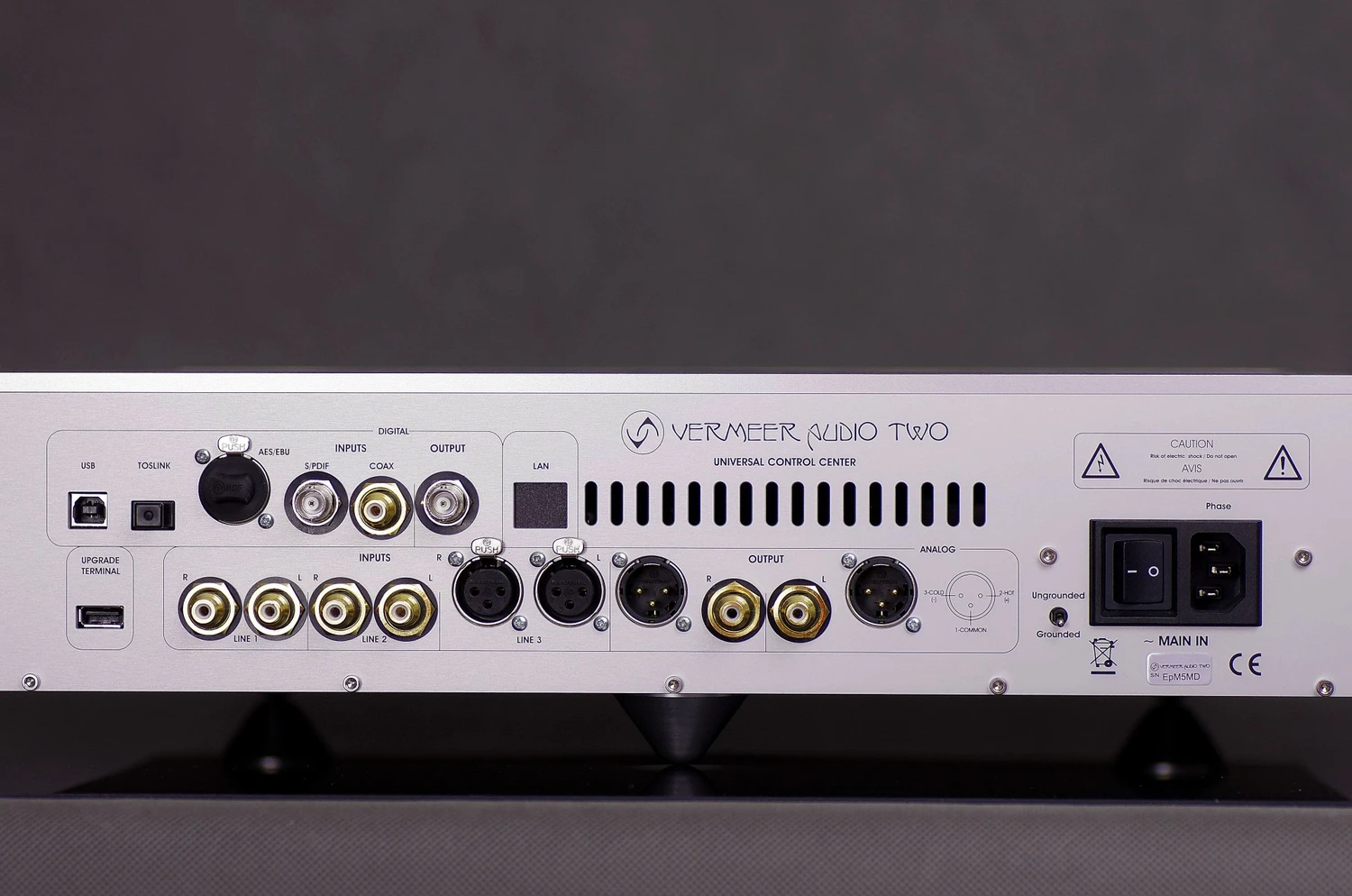 Je ne suis pas sûr que Vermeer Audio livre toujours ses produits de cette manière, mais malgré le fait que le Model TWO ne soit pas si grand ni si lourd, il a été livré dans une solide boîte en carton renforcée par des morceaux de bois (ce qui est sûrement standard) placée sur une petite palette (c’est la partie dont je ne suis pas sûr à 100 % qu’elle soit standard). Lorsque vous expédiez des appareils électroniques, surtout à l’international, vous ne voulez pas que quoi que ce soit arrive à votre produit pendant le transport. Donc, l’emballage est très important et l’entreprise française a fait un excellent travail à ce sujet. Le déballage peut prendre un peu plus de temps que d’habitude, mais je suis sûr que chaque propriétaire appréciera que son nouveau « jouet » soit livré en parfait état. Commençons par expliquer ce que signifie le fabricant par Centre de Contrôle Universel. Le Model TWO est en fait un appareil deux-en-un. C’est un convertisseur D/A, mais c’est aussi un préamplificateur analogique. Ce qui se traduit par le fait qu’il s’agit d’un Centre de Contrôle Universel car il acceptera des signaux provenant de sources numériques et analogiques et, grâce à son signal de sortie réglable, est capable de piloter un amplificateur de puissance directement sans impliquer un étage de ligne séparé. Si l’on le considère exclusivement comme un DAC, il peut sembler assez grand et lourd (25 kg !). Mais compte tenu de sa double fonction, sa taille et son poids ne sont plus si surprenants. Après avoir sorti l’appareil de la boîte, on voit un design rigide, robuste et pourtant esthétiquement plaisant – quelque chose que l’on serait prêt à placer au meilleur endroit de sa salle d’écoute et à présenter fièrement à sa famille et à ses amis. Le châssis est fabriqué en aluminium de haute qualité. Il repose sur trois pieds en métal coniques arrondis. Après avoir joué un peu avec l’appareil, j’ai décidé d’utiliser en plus des pieds en céramique Franc Audio Accessories Ceramic Disc Slim qui ont encore amélioré la clarté et la concentration du son (non pas qu’il y ait eu quelque chose de mal avec la performance sans eux, mais simplement qu’avec eux, cela sonnait encore mieux). Le panneau avant, dans sa partie centrale, fait au moins 30 mm d’épaisseur, tandis que sur les côtés, il est plutôt de 15 mm. Sa forme me rappelle une vague, d’où l’épaisseur non uniforme. La partie la plus épaisse, à peu près plate, au milieu dispose d’un très bel affichage bleu que j’ai pu lire facilement de ma chaise (c’est à peu près à 3 m de distance et, il faut le dire, je ne suis plus tout jeune, donc c’est tout de même un accomplissement). Sur les deux « côtés » plus fins, il y a de petites récessions avec trois boutons-poussoirs en métal chacun (à gauche, ils contrôlent : « MENU », « VOL » (bas) et « VOL » (haut) et à droite « CH » (bas), « CH » (haut) et « PHASE »). Ces boutons permettent à l’utilisateur de faire fonctionner l’appareil manuellement, bien que l’utilisation d’une élégante télécommande solide rende les choses plus pratiques. Le panneau arrière présente une abondance d’entrées et de sorties. Commençons par les premières. Il y a trois entrées analogiques, dont une XLR équilibrée et deux RCA. Il y a aussi cinq entrées numériques : USB, Toslink optique, AES/EBU, RCA coaxial et BNC, plus éventuellement une sixième – LAN. Cette dernière sera proposée bientôt moyennant des frais supplémentaires. Les entrées USB, AES/EBU et coaxiale acceptent le signal PCM jusqu’à 24 bits et 192 kHz et DSD64. Le LAN (non présent dans l’unité de revue) ajoute la fonctionnalité de lecture de fichiers DSD natifs jusqu’à 11,28 MHz et PCM jusqu’à 32/384, exploitant ainsi tout le potentiel du circuit DAC. En ce qui concerne les sorties, il y a à la fois des sorties analogiques équilibrées et non équilibrées, mais aussi un BNC numérique qui permet l’utilisation d’un processeur numérique externe (DSP, correction de pièce) dans le système. Il y a également un port USB supplémentaire qui doit être utilisé uniquement pour mettre à jour le logiciel du TWO. Sur le côté droit, il y a un petit interrupteur de mise à la terre, une prise IEC et l’interrupteur principal marche/arrêt. La conception du circuit est largement basée sur l’Audio Aero La Fontaine simplement parce qu’il s’agissait d’une conception plus récente que le modèle phare de cette marque, La Source. Les gars de Vermeer Audio ont voulu offrir une solution plus moderne, y compris des entrées USB et LAN capables de lire des fichiers haute résolution, à la fois PCM et DSD. Le Model TWO utilise des circuits de conversion 32 bits/384 kHz, une évolution majeure du module S.T.A.R.S utilisé précédemment. L’appareil dispose également d’une horloge maître à ultra-faible jitter qui incorpore un cristal de quartz naturel de haute qualité. Vermeer Audio affirme que cela leur a permis d’atteindre un nouveau niveau de réduction du bruit et des artefacts numériques (y compris le jitter) avec moins de 1 µs de jitter RMS. Les alimentations de conception hybride ont été réengineering pour une efficacité et une fiabilité maximales avec différents circuits pour les cartes de circuits analogiques et numériques. Tous les modules disposent de leurs propres régulateurs de tension avec la tension spécifique requise pour chacun d’eux. Les étapes analogiques et numériques ont leurs propres alimentations dédiées, ce qui élimine tout bruit résiduel et toute interférence entre le domaine numérique et analogique. Vermeer implémente également la dernière génération de circuits intégrés Mos-Fet pour réduire le bruit dans le chemin du signal. Ils utilisent des cartes de haute qualité avec des contacts plaqués or 24K et des circuits en cu