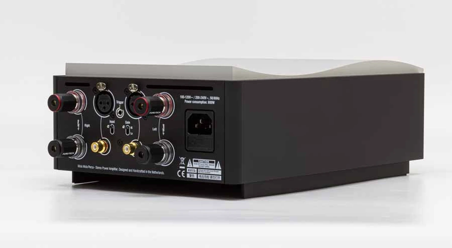 La qualité de fabrication, comme je l’ai déjà mentionné, est excellente et s’inscrit dans le talent de design que je vois régulièrement de cette région du monde. L’arrière annonce fièrement « …fabriqué à la main aux Pays-Bas », et cela ressemble certainement à un produit fait main. Ce n’est pas une boîte standard provenant de votre magasin de bricolage local ! L’appareil devient légèrement chaud, mais l’efficacité de ce type d’amplification signifie que mon portefeuille sera heureux, même si peut-être pas mon fournisseur d’électricité, car les amplificateurs Classe-D et les alimentations à découpage sont très efficaces.