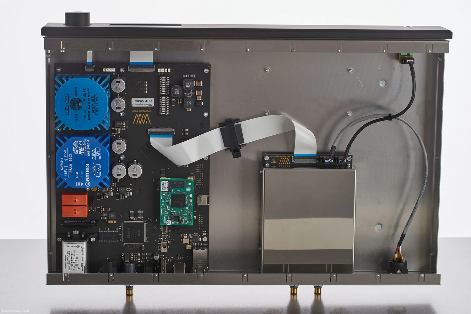 À l’arrière de l’appareil se trouvent, comme d’habitude, les entrées pour les sources numériques et les sorties analogiques, ainsi qu’une sortie casque symétrique, ce qui est vraiment inhabituel. Même avec les pauses de commutation un peu plus longues, les différences entre les deux ponts de streaming deviennent rapidement évidentes : lorsque le Weiss reçoit son signal de l’Aries G2.1, il est capable de suggérer des espaces encore plus vastes et des scènes imaginaires plus profondes. Cependant, la plage des basses est encore un peu plus volumineuse lorsque le renderer intégré au DAC502 récupère les données du Melco et les prépare pour la section de conversion. Lorsqu’il est déchargé de ce travail et que cette tâche est transférée à l’Aries, il n’y a pas seulement un soupçon d’informations spatiales plus significatives à entendre, mais aussi quelques détails supplémentaires. Cela dépend du reste de la chaîne ou des préférences personnelles, si l’on préfère un peu plus de plénitude ou plus de précision dans la plage des basses – cette dernière étant associée à une meilleure définition. Le convertisseur du Weiss permet en tout cas de profiter des deux. Il n’est donc pas surprenant que je me sois finalement décidé pour une représentation spatiale plus large, et par conséquent pour l’utilisation de l’Aries G2.1, répartissant ainsi les différentes tâches de lecture sur plusieurs appareils. Il a déjà été prouvé à plusieurs reprises que dans les chaînes de lecture numériques, une plus grande résolution est atteinte lorsque plusieurs processeurs moins sollicités prennent en charge le travail.