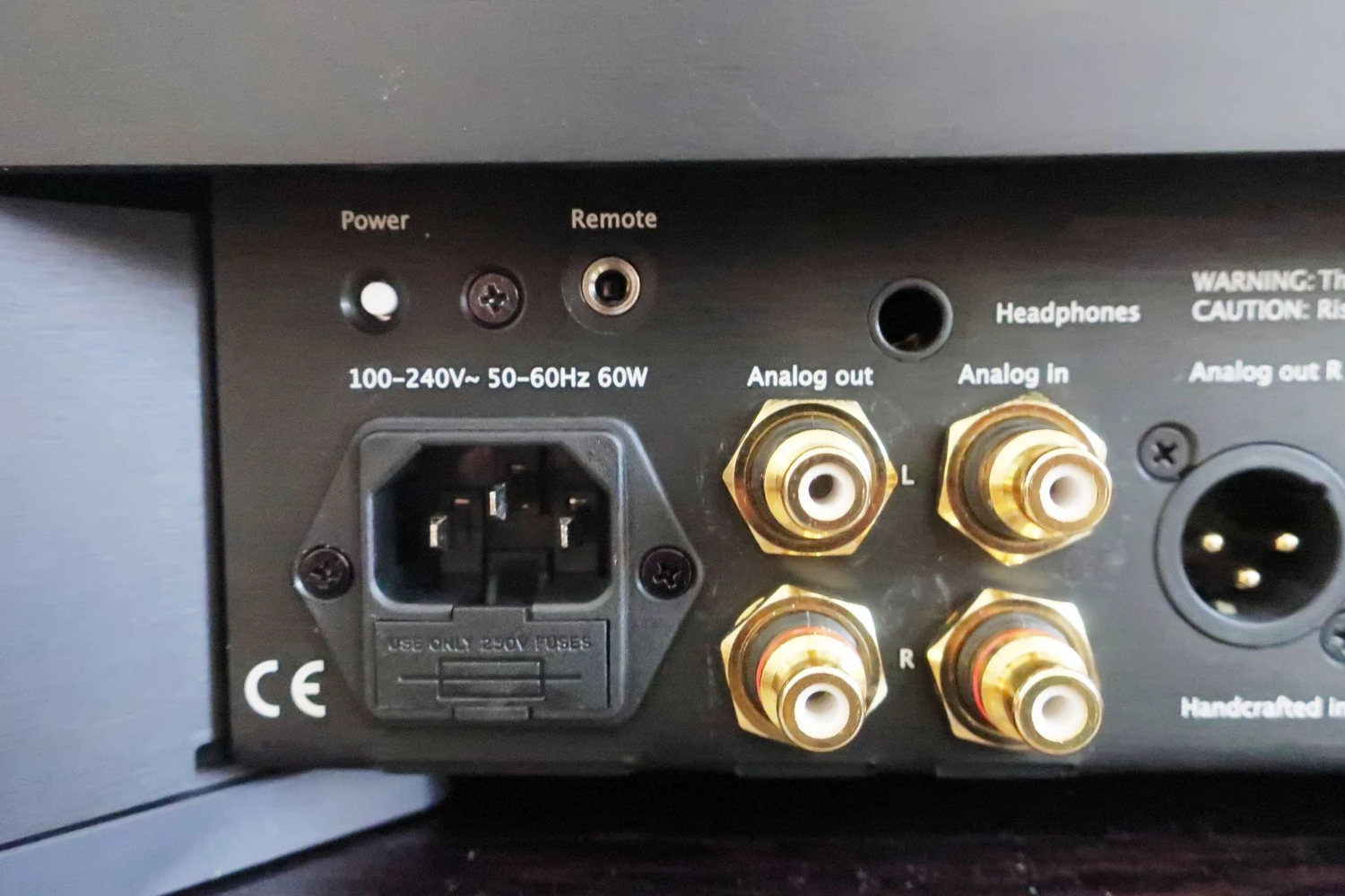 La large gamme de capacités est indiquée par un regard sous le capot arrière, où se cachent une pléthore de connecteurs. De gauche à droite, vous verrez une prise d’alimentation standard, au-dessus d’elle un petit bouton d’alimentation inhabituellement placé et un jack 3,5 mm pour connecter un capteur externe de télécommande. Ensuite, il y a une sortie casque de 6,3 mm et en dessous, une paire de prises cinch pour l’entrée analogique et une autre pour la sortie analogique. La même configuration est disponible un peu plus loin en format XLR.