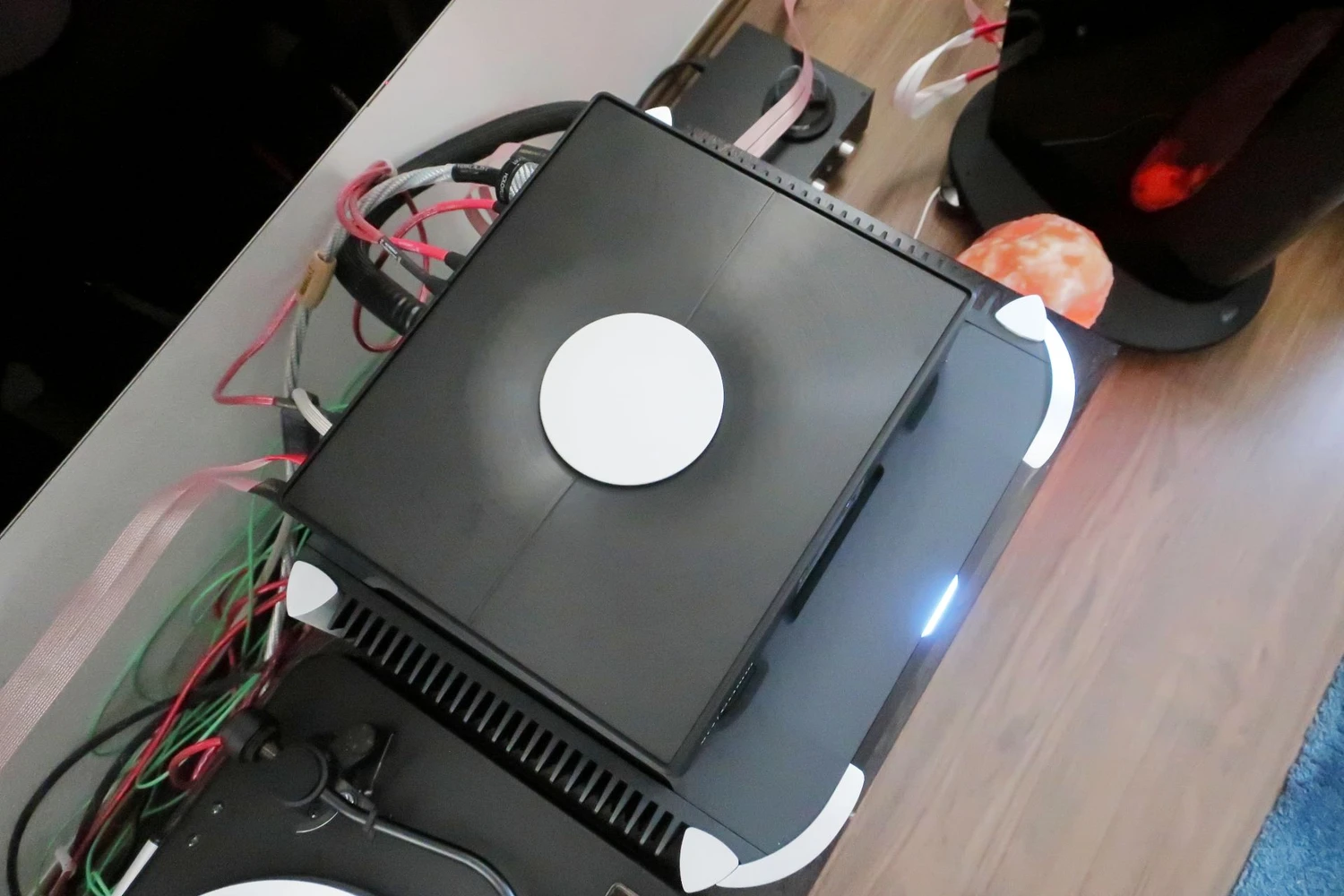 Contrairement au modèle précédent, le MU1, il s’agit d’une machine conçue de manière plus complexe, bien que le châssis soit presque identique à première vue. Cela signifie une largeur non standard de 35,5 cm et une profondeur de 29,5 cm, créant avec une hauteur de 8,5 cm un objet presque lifestyle (son poids de 4,5 kg n’est également pas extrême). Quatre pieds radiaux étroits, des bords verticaux arrondis et une pureté de design presque industrielle distinguent le MU2 de la plupart des produits sur le marché.