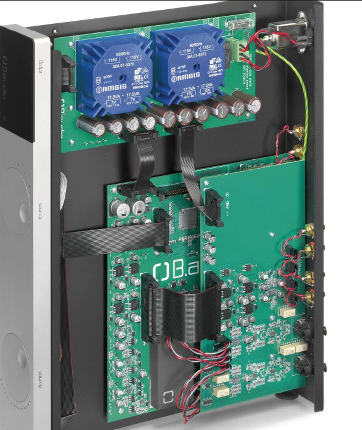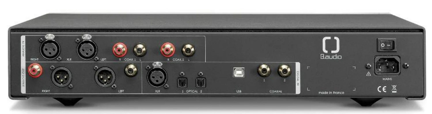 Les trois membres de B.audio sont convaincus qu’un convertisseur D/A exceptionnel commence par empêcher le jitter des sources d’entrer dans le chemin du signal du DAC. Pour cela, ils ont développé un circuit breveté appelé Source Jitter Removal (SRJ). Ce circuit doit maintenir chaque jitter d’entrée – que ce soit via S/PDIF, Toslink, AES/EBU ou USB – à l’écart. Dans le DAC lui-même, un horloge est générée pour la conversion numérique/analogique, complètement indépendante de celle du signal source. Les détails de ce fonctionnement restent cependant secrets. Les parties essentielles du convertisseur sont réalisées dans une section optiquement blindée du circuit. Même sur la question du type de puce de conversion utilisée, Cédric Bermann reste discret. Il a cependant une bonne raison : les auditeurs tendent souvent à se focaliser trop sur la provenance de cette puce, alors que « ce n’est absolument pas le cœur du problème », souligne le responsable technique de B.audio. « Bien sûr, la puce de conversion doit être de la plus haute qualité. Mais au final, peu importe le nom de la marque. Ce qui est bien plus important, c’est la périphérie que l’on construit autour du convertisseur. »
