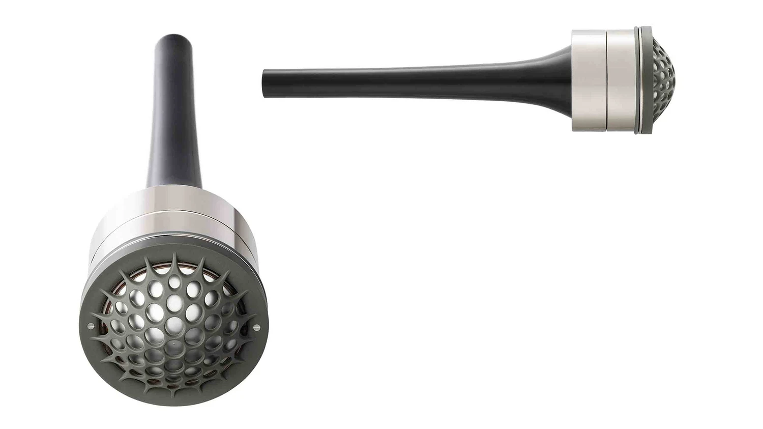 La chose la plus distinctive à propos des haut-parleurs est que chaque élément de haut-parleur est monté à l’extrémité d’un tube conique qui va vers l’arrière, à travers le châssis. Que ce soit conique signifie qu’il se rétrécit progressivement, à l’opposé d’une corne de haut-parleur. Une corne de haut-parleur amplifie le son d’une membrane de haut-parleur, en ce sens que la membrane fonctionne sous haute pression d’air à l’intérieur de la corne, de sorte que la pression diminue progressivement à mesure que le son se déplace vers l’extérieur vers l’ouverture. À l’extrémité de la corne, l’impédance acoustique est le mieux adaptée à l’air, de sorte que le moins d’énergie possible soit perdue lorsque le son quitte le haut-parleur et passe dans un autre milieu : l’air. De cette manière, une bien plus grande partie de l’énergie électrique de l’amplificateur est convertie en énergie cinétique dans l’air. Un tube conique derrière l’élément du haut-parleur fonctionne dans l’autre sens. À mesure que le son se déplace vers l’intérieur dans le tube, la pression de l’air augmente. L’impédance mécanique augmente en conséquence, jusqu’à ce qu’elle soit enfin si éloignée de la faible impédance de l’air que très peu d’énergie peut être transférée. Le résultat est que le son s’éteint. Il n’y a alors presque aucun son provenant de l’arrière de l’élément du haut-parleur, ce qui peut gâcher le son de l’avant. Le résultat est en théorie un haut-parleur avec un bien meilleur timing et une réponse transitoire.