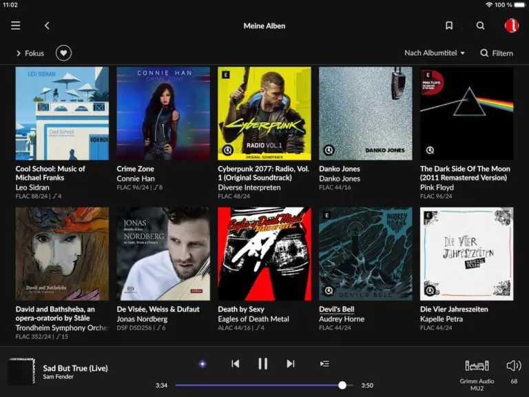 Surtout avec des albums de qualité CD plutôt moyenne, le MU2 montre ce qu’un suréchantillonnage réfléchi peut apporter. “Born A Lion” de Danko Jones résonne agréablement ouvert à travers les haut-parleurs, paraissant transparent et contrôlé. La ligne de basse riche groove de manière décontractée, les cymbales sonnent fraîches et excellemment rythmées, tandis que les chants de Danko sont charismatiques et directs dans l’espace. Grimm parvient ici à donner à une résolution CD quelques qualités d’enregistrements HiRes, tout en permettant aux HiRes natifs de montrer toutes leurs qualités. “Mettal EP” de Rodrigo y Gabriela brille une fois de plus par sa merveilleuse représentation ouverte et détaillée, qui convient parfaitement aux morceaux extrêmement dynamiques. Chaque élément des morceaux joués rapidement et énergiquement obtient de l’espace, apportant de petits détails et se sentant simplement juste. Le MU2 semble ici jamais contraint, indépendamment du tempo ou de la tonalité de la musique. Les biographies des artistes, les critiques d’albums, les liens croisés et les listes de lecture générées automatiquement créent une sensation de magasin de disques qui fait souvent défaut aux systèmes de streaming modernes. Même la consultation de livrets numériques ou la commande de billets de concert sont possibles avec roon.