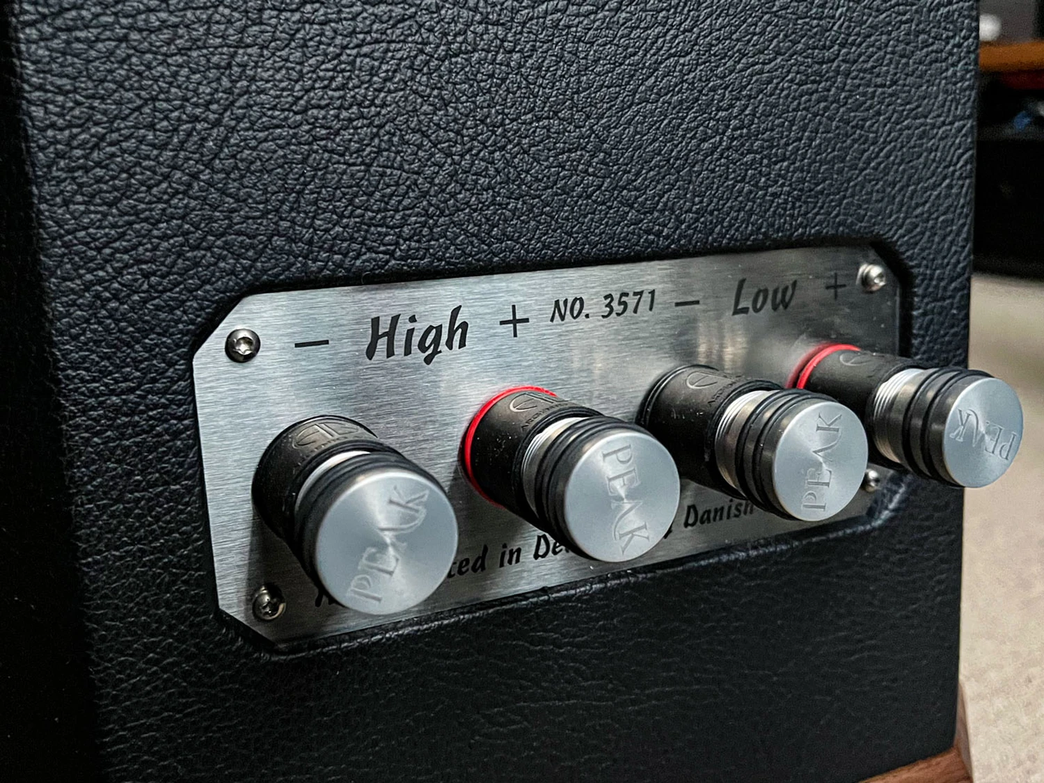 On pense involontairement à Dynaudio. Ce qui a toujours caractérisé Dynaudio était l’harmonie exceptionnellement bonne des haut-parleurs – notamment dans leurs enceintes compactes avec un grand tweeter à dôme et un haut-parleur de basses-médiums de 17 cm. C’est exactement ce que nous trouvons ici : le Sonora est un design à 2 voies avec des composants très similaires – sauf que ni le tweeter (Scan-Speak) ni les haut-parleurs de basses-médiums (AudioTechnology) ne proviennent de Dynaudio et qu’au lieu d’un port de basses reflex, un cône passif de 20 cm à l’arrière fournit un meilleur renforcement des basses. Le tweeter D3004/662000 de 1 pouce est le meilleur que le spécialiste Scan-Speak propose dans la gamme des tweeters à dôme en tissu à forte atténuation. Le haut-parleur de médium-basses d’AudioTechnology a non seulement été étiqueté sur le Dustcap pour Peak Consult, mais a également été adapté précisément aux exigences de l’enceinte Sonora. Les deux, le tweeter et le haut-parleur de basses-médiums, font partie des meilleurs que la technologie des haut-parleurs ait réalisés à ce jour. Et pourtant, Karl-Heinz Fink (qui développe lui-même les haut-parleurs pour d’autres marques) a pu introduire des améliorations décisives pour réduire la distorsion à divers endroits. Cependant, le facteur décisif dans les transducteurs danois était et est la mécanique des caissons. On sent ici clairement des maîtres à l’œuvre, ce qui devient évident dès que l’on déballe le haut-parleur. Avec vos mains, vous ressentez le travail impeccable. Et votre dos ressent que ces « petites enceintes d’entrée de gamme » ne devraient jamais être soulevées seules. On dit qu’un Sonora pèse juste en dessous de 50 kilos. Je ne l’ai pas pesé, mais je pense que ce chiffre est largement sous-estimé et je soupçonne qu’il est plus proche de 75 kilos. En résumé, le Sonora peut avoir une forme délicate, mais il donne l’impression d’avoir été coulé en béton.