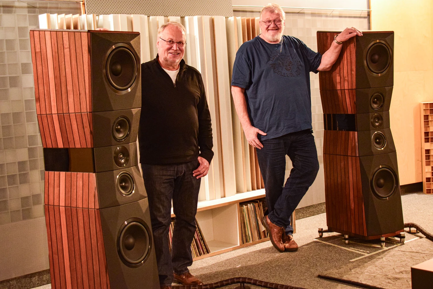 Karl-Heinz Fink est là pour l’aider. Fink dispose d’un bureau de développement entièrement équipé avec un certain nombre de spécialistes à bord, mais il est également considéré comme l’un des développeurs de haut-parleurs les plus expérimentés au monde et travaille pour des marques bien connues à l’échelle mondiale. Maintenant aussi pour Peak Consult. Son travail consistait à analyser les modèles existants (Sonora, Sinfonia, Diabolo) et à les réviser à nouveau – ce qu’il a d’ailleurs fait de manière excellente dans le cas de la Sonora – voir le test. Dans une bonne ambiance pour une bonne raison : Wilfried Ehrenholz et Karl-Heinz Fink sont ravis de la performance réussie de la Peak Consult Dragon Legacy dans la salle d’écoute FinkTeam à Essen (Photo : H. Biermann).