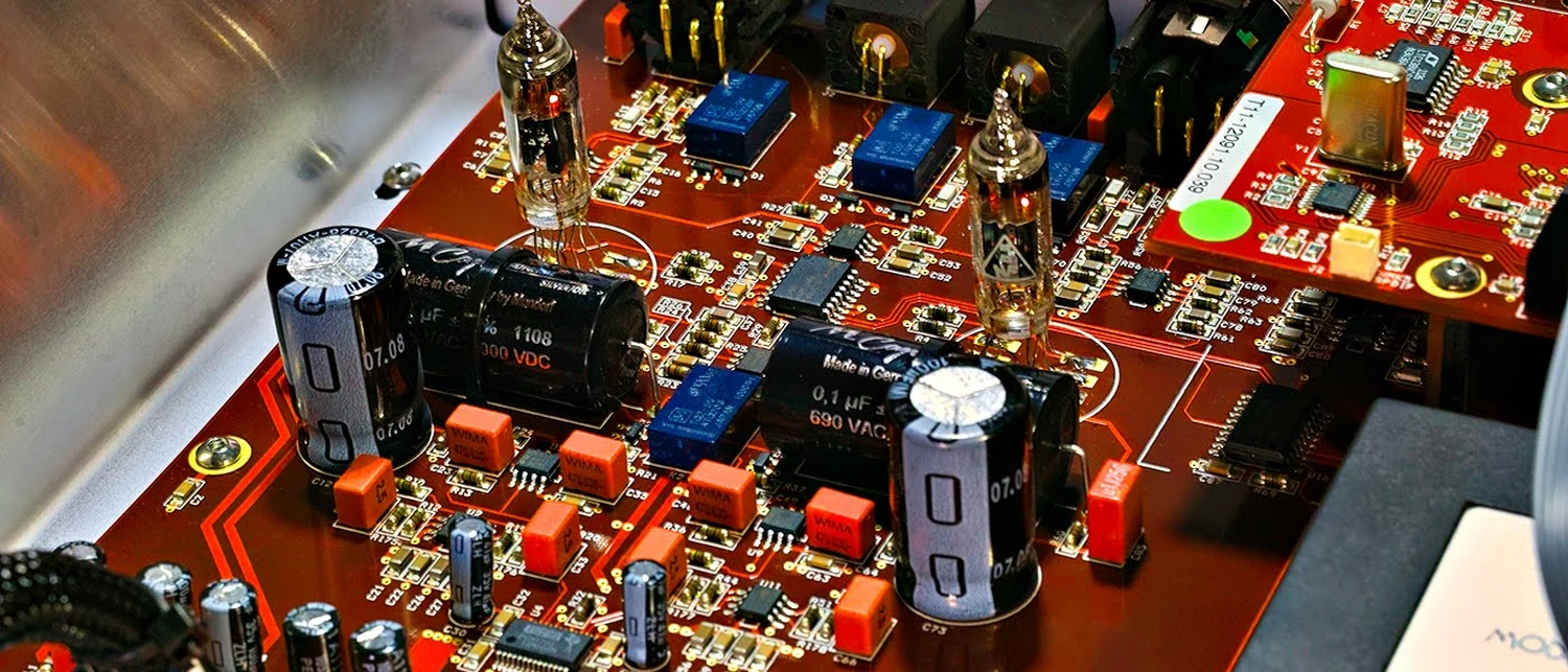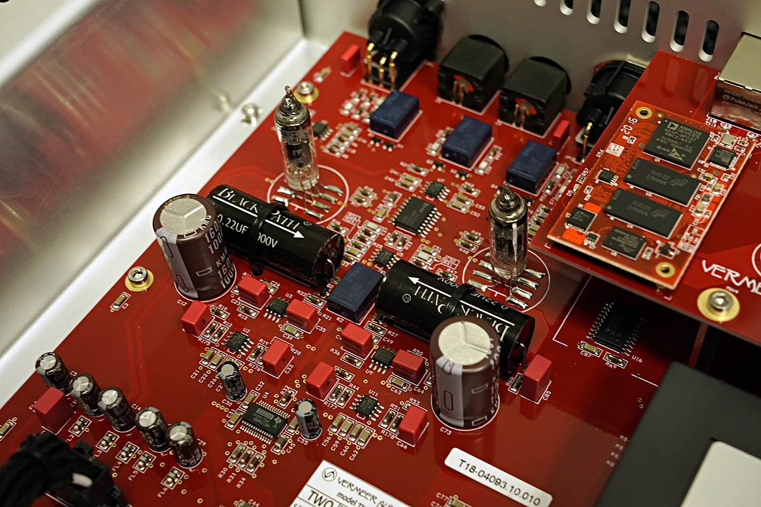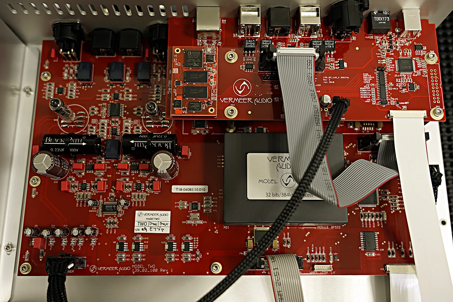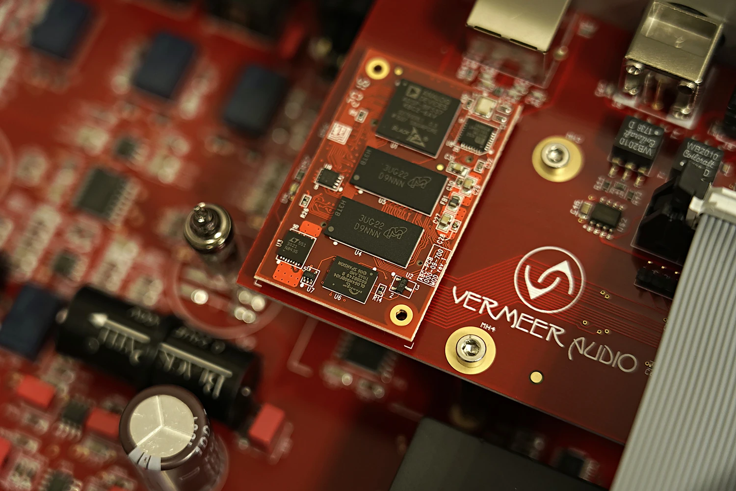 Vermeer Audio TWO utilise uniquement des cartes PCB à la pointe de la technologie. Tous les points de contact sont plaqués or 24K avec des traces de cuivre de 70 ppm qui permettent un flux de données parfait.