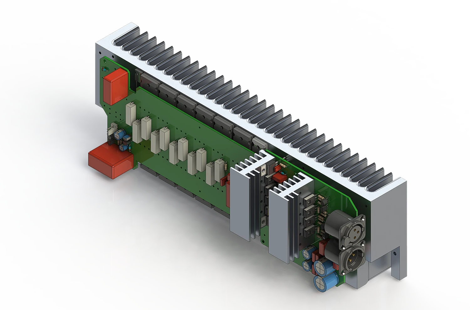 La performance thermique du dissipateur est l’un des facteurs cruciaux dans la conception d’un amplificateur classe A solide. Le Rei est un monstre de classe A pur qui génère plus de 120 watts de chaleur à partir des transistors de puissance, et le dissipateur principal de l’unité doit dissiper cela de manière efficace et efficiente. La plupart des fabricants exposent leur dissipateur à l’environnement pour augmenter l’efficacité. Cependant, avoir le dissipateur exposé à l’environnement d’écoute signifie que la pression acoustique générée par le haut-parleur dans la zone d’écoute transmet également les vibrations aux dissipateurs. Ces vibrations peuvent causer des micro-distorsions indésirables similaires à l’effet “microphone” que l’on trouve dans les amplificateurs à lampes. Pour réduire ce phénomène, WestminsterLab a étudié différentes approches en matière de conception de dissipateurs et quel type de profil ou de matériaux serait le meilleur dans ce cas particulier. Après des centaines d’heures de simulation finie, de prototypage et de tests d’écoute critiques, ils ont conçu un dissipateur avec un design de ailettes asymétriques, dont la fréquence de résonance est la plus éloignée possible de la fréquence audio critique et qui est très efficace en matière de dissipation thermique.