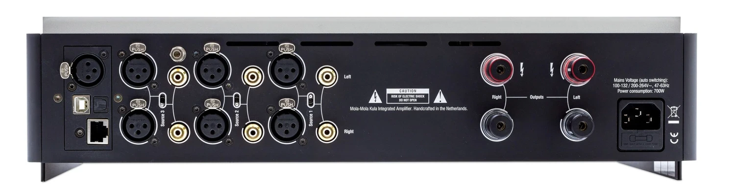 Basé sur le même châssis que le célèbre préamplificateur Makua (évalué ICI), l’échantillon de test est arrivé _chez moi_ dans un solide étui de vol doublé de mousse, l’amplificateur étant accompagné d’un manuel d’instructions complet expliquant les détails de configuration et les paramètres de contrôle de base. La télécommande plate en argent désormais universelle que Mola Mola, Apple et une multitude d’autres fabricants fournissent permet d’ajuster les niveaux de volume et les choix d’entrée, mais il faut utiliser l’application téléchargeable pour contrôler les options de commutation et de lecture plus complexes du DAC et du préamplificateur phono. L’amplificateur a l’air et se sent identique au préamplificateur Makua de prix similaire mais manque de l’ensemble complet des entrées analogiques fournies avec le préamplificateur (3 pour le Kula contre 5 pour le Makua). De manière inhabituelle pour un amplificateur intégré moderne, le Kula ne dispose d’aucune sortie analogique, une concession que l’importateur Bill Parish de GTT Audio & Video décrit comme une nécessité pour maximiser les performances. Le Kula fonctionne exclusivement comme un amplificateur intégré. Son châssis en aluminium sculpté avec grâce et sablé, ainsi que ses panneaux latéraux noirs décoratifs, attirent l’œil et enchantent au toucher. Même pour les non-initiés, il devrait être clair que ce n’est pas votre composant haut de gamme typique. À l’intérieur, il est peut-être plus facile de considérer le Kula comme un préamplificateur Makua entièrement équipé avec un bonus important : un amplificateur de classe D nCore amélioré qui, selon les dires, sonne un peu plus doux même que les célèbres amplificateurs mono Kuluga de la société (bien qu’avec considérablement moins de puissance à 150 watts sous 8 ohms contre la stupéfiante évaluation de 400 watts par canal du Kaluga sous la même charge). Je ne vais pas récapituler tous les trucs que Mola Mola a intégrés (avec une grâce et une compétence extraordinaires) dans le châssis petit du Kula (pour en savoir plus, voir ICI) sauf pour noter que le DAC prend en charge le PCM jusqu’à 384 kHz/32 bits, et jusqu’à “Quad” DSD (DSD256). Le convertisseur à deux cartes suréchantillonne tout l’audio numérique entrant à 3,125 MHz/32 bits et le convertit ensuite en PWM façonné par le bruit. Le DAC se vante d’un SNR époustouflant de 130 dB. Avec le module DAC et le module réseau installés, le Kula fonctionne comme un point de terminaison ROON. Les mises à jour logicielles se font via USB et Bluetooth selon le type de mise à jour téléchargée. Utilement, le Kula accepte les entrées numériques AES/EBU, USB et optiques. Bill Parish a révélé que le DAC intégré est, dans la plupart des aspects clés, le même que le convertisseur Tambaqui plus cher, à l’exception des sorties analogiques dédiées de l’unité autonome, de l’alimentation et du boîtier élaboré.