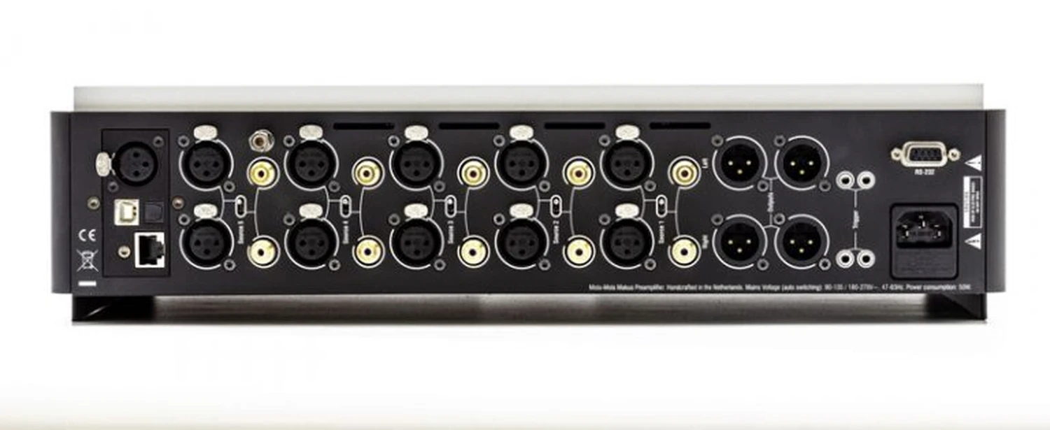 « Les 6 boutons de préréglage sont programmables via USB ou Bluetooth pour accéder à toute combinaison de canaux, traitements et routages. Dans un système essentiellement numérique, les boutons seront programmés pour sélectionner les sources. Les amateurs de vinyle, eux, pourront assigner plusieurs préréglages à la même platine, mais avec des égalisations différentes pour leur vaste collection de disques historiques. Toutes les entrées sont commutables entre XLR et RCA flottant, et peuvent être affectées en ligne ou phono. Tous les étages du Makua utilisent des modules discrets dans une topologie peu connue, appelée “différentielle à commande asymétrique”. Cette structure empêche la propagation du bruit à travers le chemin du signal. »