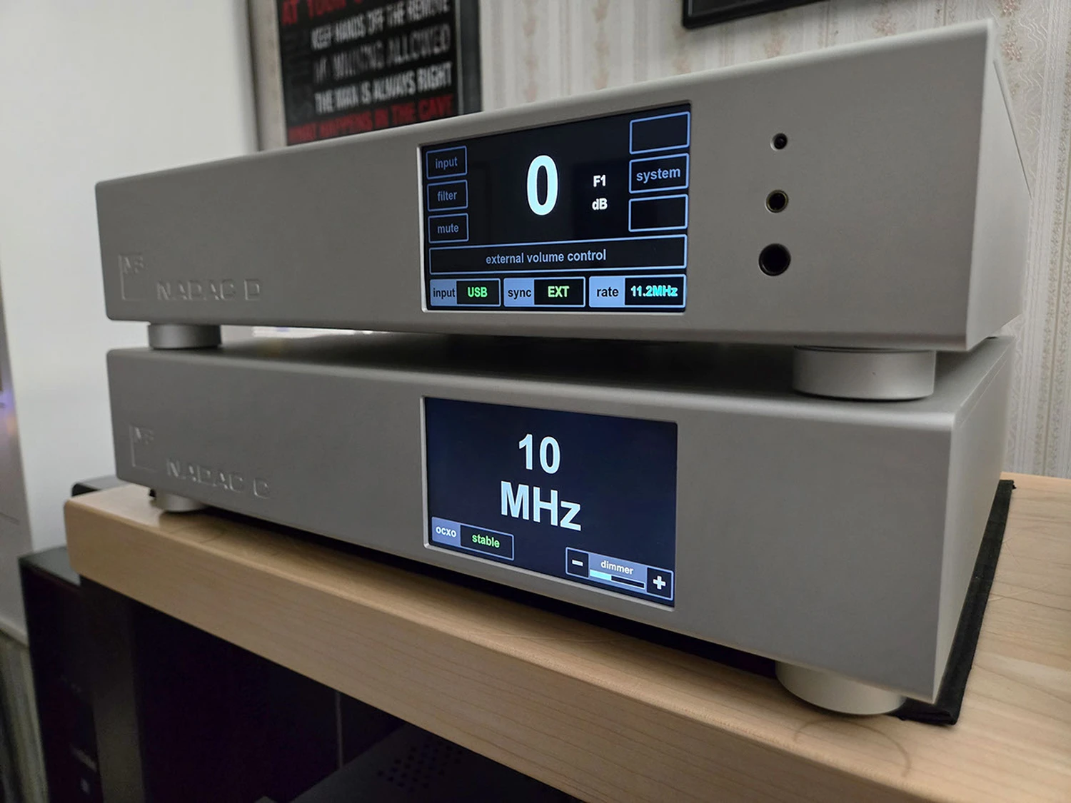 Pour réaliser ces résultats remarquables, le NADAC D doit utiliser à la fois un horloge extrêmement précise et une alimentation électrique de très haute qualité qui utilise une technologie de température constante pour garantir des performances maximales pendant les processus d’horloge et de conversion numérique-analogique. Bien que le NADAC D offre des améliorations de performance significatives par lui-même, il bénéficie également de son interdépendance avec l’horloge NADAC C. Un système d’horloge séparé et extrêmement précis, le C exploite un oscillateur à cristal pour fournir un signal de référence de 10 MHz à haute précision au NADAC D, maximisant l’exactitude de sa conversion 1-bit. Il utilise une technique de “synthèse de fréquence à deux niveaux”, créant d’abord un signal d’horloge de base très stable et précis, puis utilisant cette horloge de base stable pour générer les fréquences audio requises. Cette approche garantit la précision de fréquence et minimise le jitter, fournissant un signal numérique plus pur que ce qui était possible avec des technologies désormais discontinuées et obsolètes.