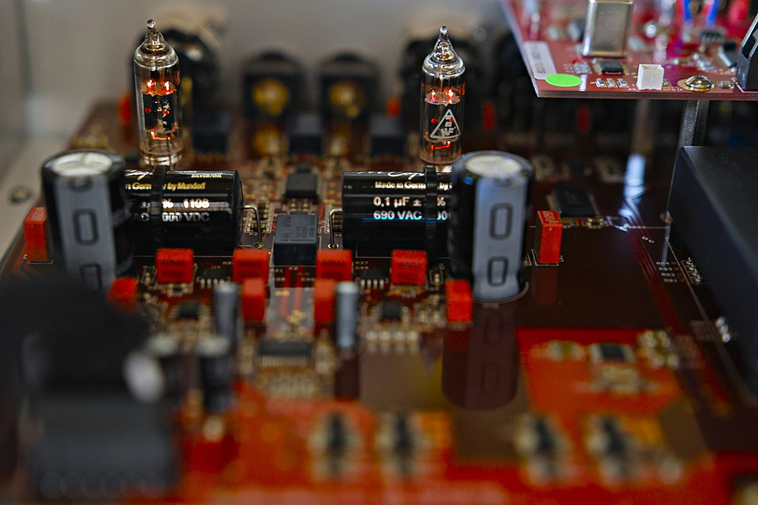 Correct, nous souhaitions lancer notre premier produit basé sur la plateforme de LaFontaine en raison de son succès indéniable. Nous avons choisi LaFontaine car elle était beaucoup plus évolutive que LaSource. Le TWO a le fondement du circuit imprimé de LaFontaine et en particulier l’étape de sortie analogique avec les tubes 6021. Cependant, nous avons développé une alimentation complètement nouvelle principalement pour la puce D/A et le circuit, y compris l’horloge numérique. Notre objectif était de concevoir un nouveau DAC en partant de LaFontaine pour obtenir un résultat sonore aussi proche que possible de l’ancien LaSource. En ce qui concerne l’enveloppe extérieure, le TWO est basé sur des éléments de design évidents de LaFontaine en hommage à l’ancien modèle. Les futurs modèles Vermeer Audio seront différents. Enfin, nous voulions travailler avec des sous-traitants de premier plan pour garantir qualité et fiabilité.