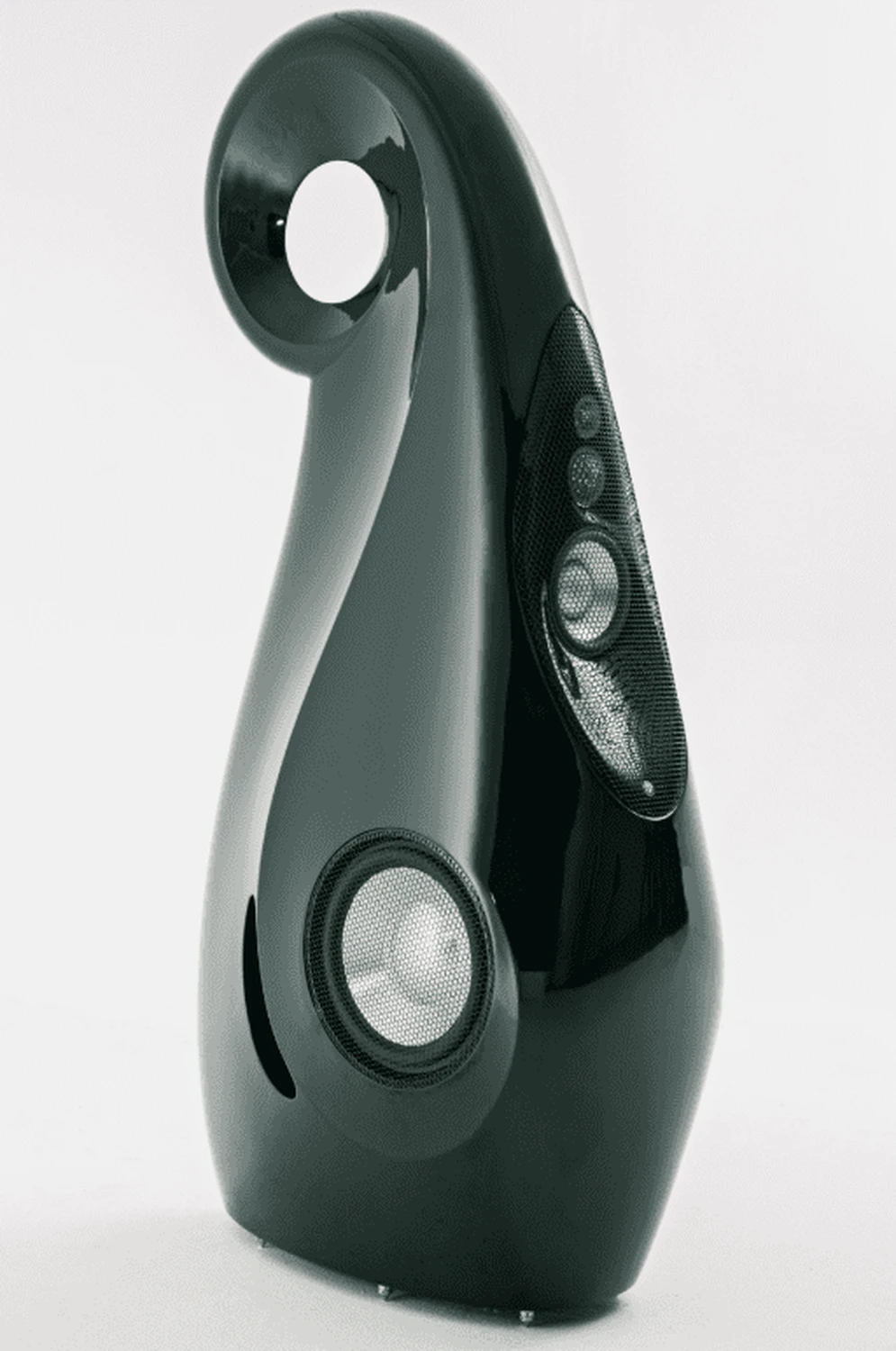 Si vous avez déjà vu l’un des Giyas, vous n’êtes pas susceptible d’oublier son apparence. J’irais même jusqu’à dire que vous avez probablement eu une forte réaction positive ou négative. De face, ils ressemblent à un grand quille de bowling ; de côté, ils ont une spirale en haut presque rappelant la courbe que l’on trouve au sommet d’un cône de crème glacée. La différence immédiatement visible entre le G1 original et le nouveau Spirit réside dans son facteur de forme. Bien qu’il soit seulement quatre pouces plus court et trois quarts de pouce plus profond, le Spirit est légèrement plus large, et cela semble encore plus vrai en raison de son profil global plus bas et de l’array de haut-parleurs abaissé sur le panneau avant. Comme c’est le cas pour toutes les enceintes Giya, les Spirits sont fabriquées à partir d’un composite sandwich très léger mais rigide, renforcé de verre et à âme en balsa, et mes modèles de test étaient finis dans un magnifique bleu nuit pailleté. Cette application délibérée de matériaux légers mais rigides a été choisie par Dickie pour diriger les résonances de l’enceinte vers des plages de fréquence plus élevées, où, Vivid soutient, elles deviennent moins apparentes. Cela contraste directement avec de nombreux autres fabricants aujourd’hui qui utilisent de l’aluminium ou une technique de stratification contraignante dense pour obtenir une enceinte à haute masse, incorporant généralement un grand panneau avant essentiellement plat et huit coins plus ou moins carrés. Au contraire, les Giyas sont continuellement contournées, avec des courbes élégantes dans un design fluide et sinueux sans un seul coin nulle part pour interférer avec les motifs de rayonnement des haut-parleurs. L’absence de tout panneau plat ou d’arêtes vives se traduit par une absence d’interférences et une réponse off-axis incroyablement lisse. Et, mesurant cinq pieds trois pouces de haut, chaque Spirit semble étonnamment légère, pesant un peu plus de 175 livres ! Cela est possible parce que le design Vivid soulage le besoin de restreindre ou d’empêcher le mouvement réactif autrement créé par de grands woofers se déplaçant en phase les uns avec les autres sur un seul panneau avant rigide.