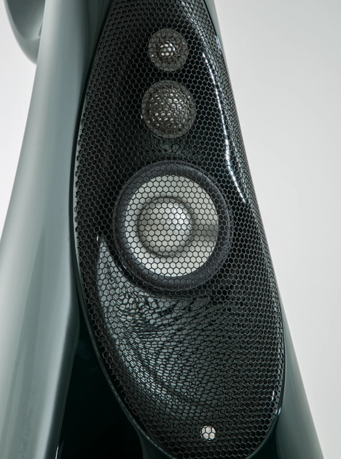 Les nouveaux C125-75 de médium inférieur fonctionnent entre 220 Hz et 880 Hz et ont également subi une refonte majeure. Bien que les anneaux de renforcement en fibre de carbone, utilisés pour élever la fréquence du premier mode de rupture dans tous les haut-parleurs à dôme Vivid Audio, aient été développés il y a plus de vingt ans par Dickie, ils ont maintenant été encore affinés, optimisés et brevetés. Vivid revendique une amélioration spectaculaire ici, affirmant que cela permet d’élever la fréquence de première rupture dans les C125-75 de 4,3 kHz à 10,5 kHz. De plus, le diamètre de la bobine mobile a également été augmenté d’environ 2 pouces à près de 3 pouces. Le panier et la structure du moteur ont également été agrandis pour accueillir le reste de la mise à niveau de conception, et il utilise une autre technologie signature de Vivid Audio, le Tapered Tube Loading.