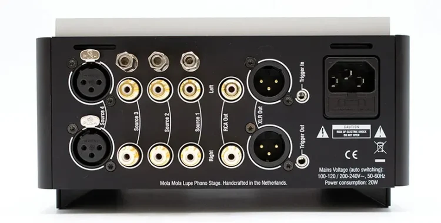 Le Lupe gère les cartouches avec des sorties allant de 30uV à 5mV grâce à un gain réglable entre 52dB et 87dB. Comme un rapport signal/bruit de 98dB sur les entrées à bobine mobile (86dB sur MM) le suggère, le Lupe est suffisamment silencieux pour rendre pratique l’utilisation de cartouches assez exotiques telles que les séries IO de Audio Note avec leur sortie de 0,05mV, sans nécessiter de transformateur d’élévation.