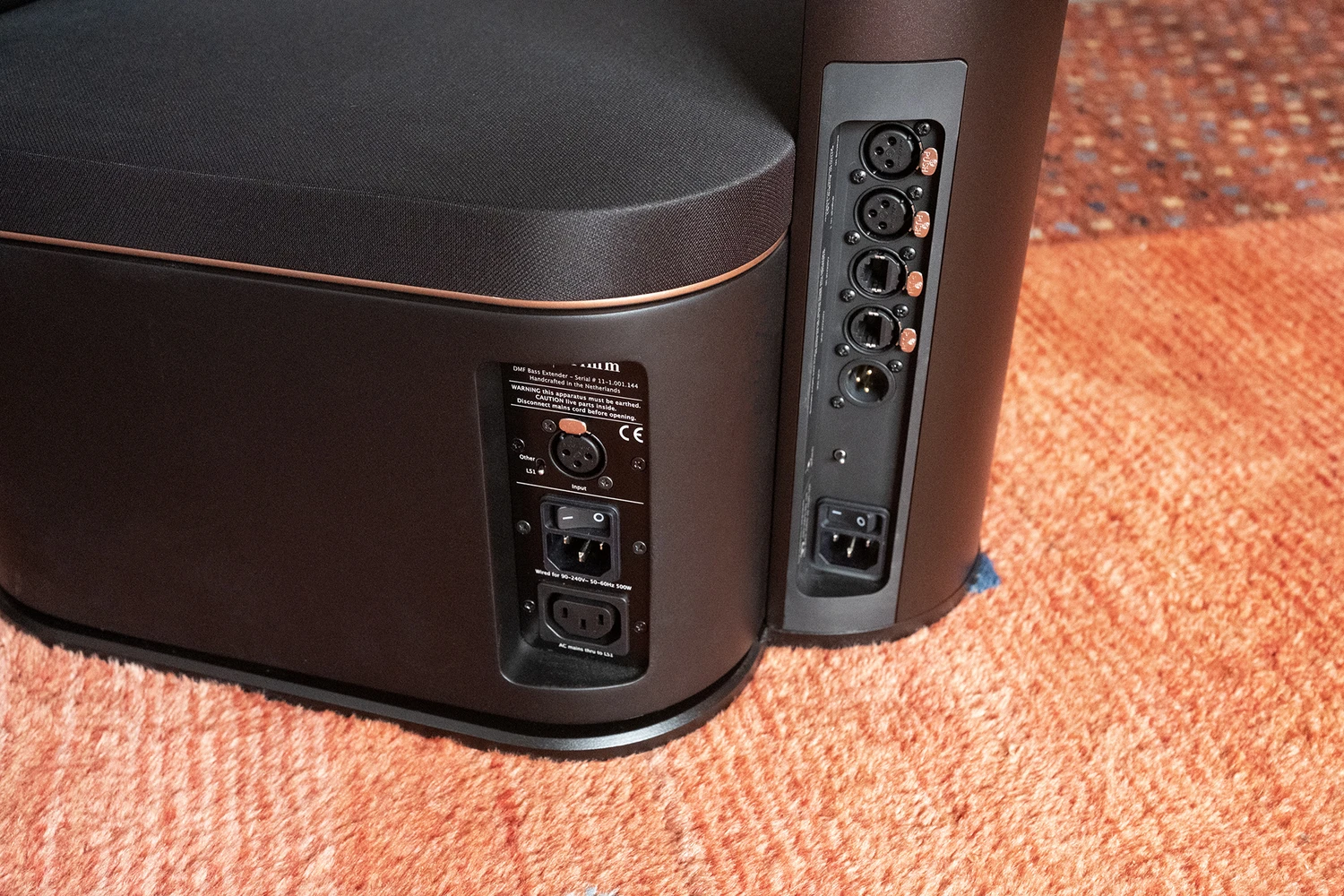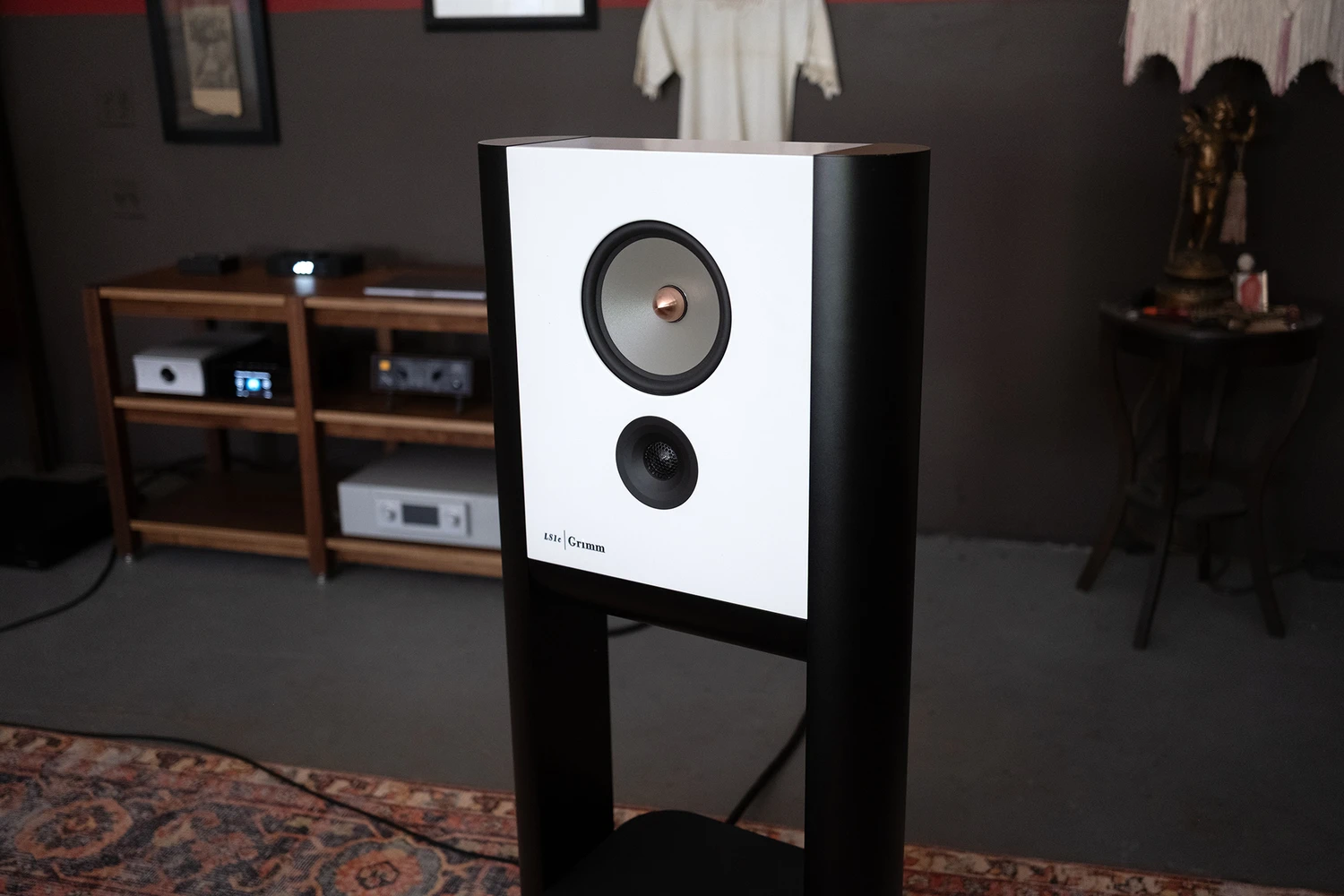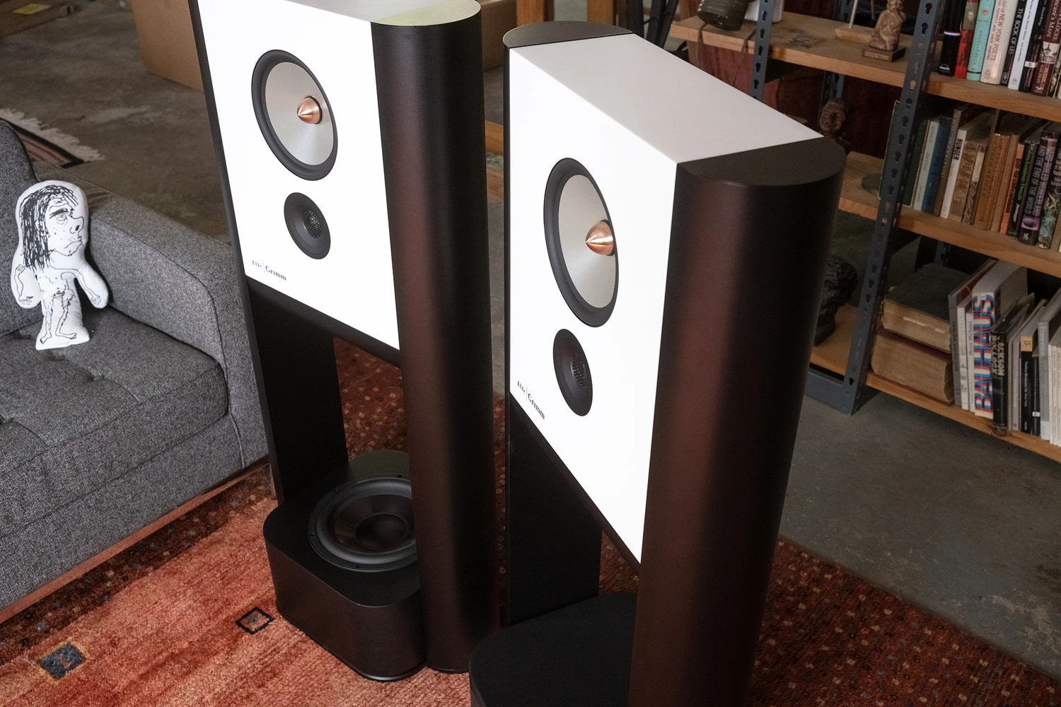 La paire testée était équipée des caissons optionnels Grimm SB1, transformant la LS1c en système 3 voies. Chaque SB1 s’intègre parfaitement sous l’enceinte et accueille un woofer Dayton de 10 pouces orienté vers le haut, amplifié par 400 W Hypex. Le SB1 utilise également la technologie Digital Motion Feedback pour réduire la distorsion.