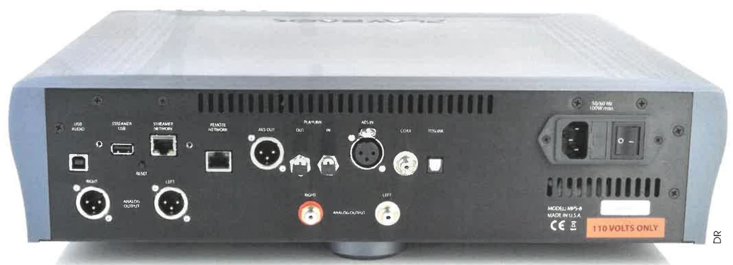 Le lecteur CD/SACD du MPS-8, tout en métal, provient de D\&M, un spécialiste japonais haut de gamme ayant développé ce transport selon les spécifications de Playback Designs. Les alimentations analogiques sont montées sur cartes en céramique, complètement séparées des circuits numériques, et les trois transformateurs toriques sont blindés individuellement.