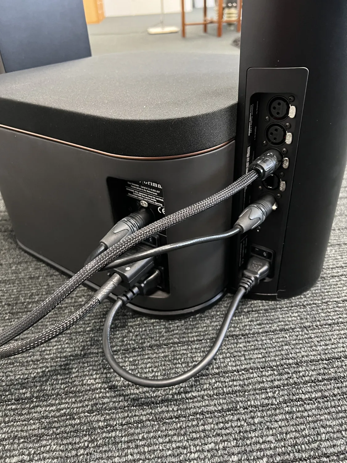La compacité de l’ensemble, qui regroupe dans un volume modeste deux DSP, deux horloges de type worldclock, quatre voies DAC, deux amplificateurs, une paire d’enceinte deux voies et deux subwoofer de forte puissance, permet d’ailleurs des démos à domicile ce qui n’est évidemment pas envisageable pour des enceintes passives de type colonne ayant les mêmes capacités à descendre dans le grave. Il faudrait d’ailleurs pour cela de monstrueux amplificateurs de puissance séparés pour maitriser aussi parfaitement les woofers et produire un médium aigu de qualité équivalente.