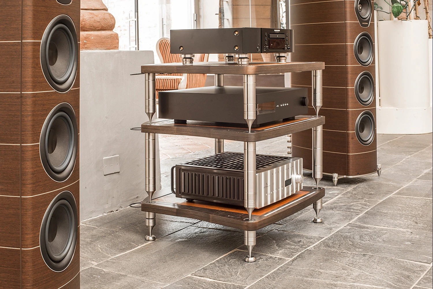 Bassocontinuo est une maison italienne spécialisée dans les meubles techniques pour l’audio haut de gamme : des racks et supports conçus pour contrôler les vibrations tout en magnifiant l’esthétique du système. Ancrée en Lombardie, la marque revendique une fabrication intégralement italienne et un réseau d’ateliers locaux qui travaillent les matériaux nobles (acier, bois HDF, carbone, cuivres) avec une exigence de design héritée du meilleur du « Made in Italy ». L’objectif : réunir performance mécanique, longévité et élégance intérieure afin que chaque meuble participe autant à l’écoute qu’au décor.