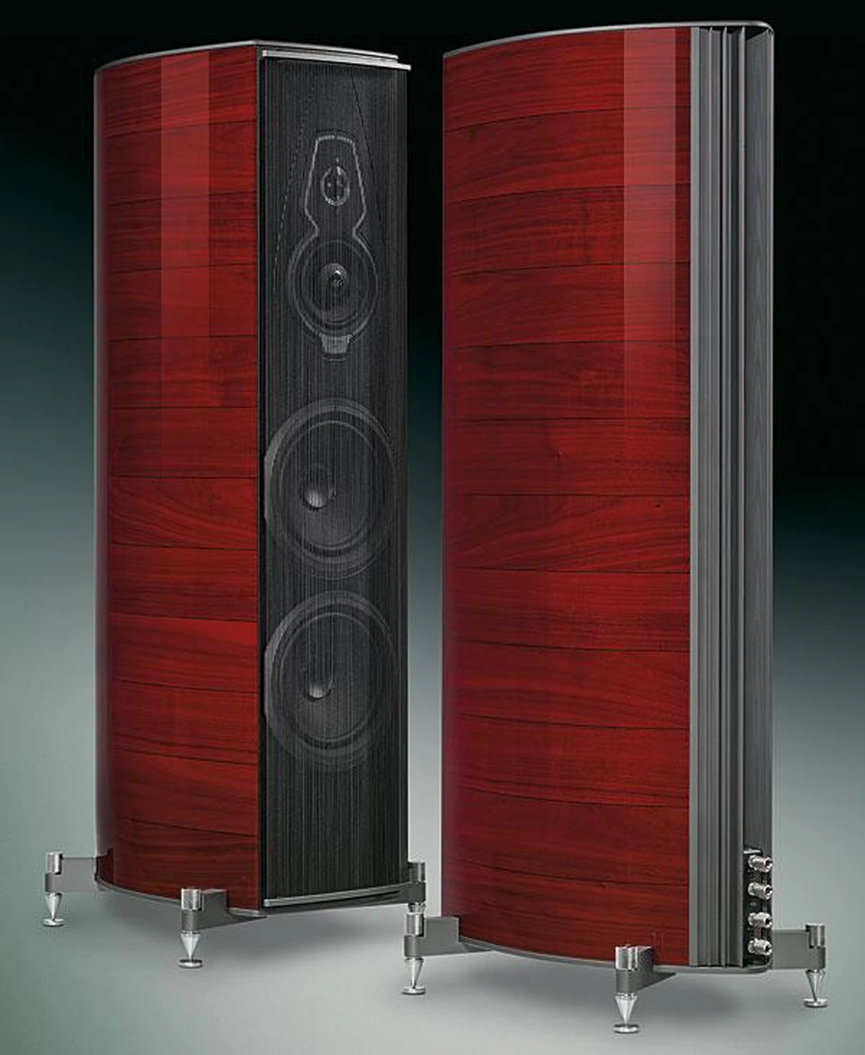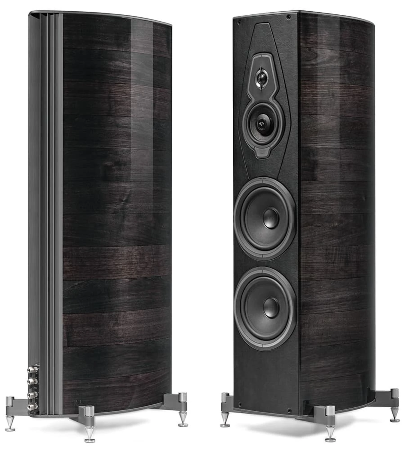 L’ADN de Sonus Faber puise directement dans la grande tradition italienne de la lutherie et de l’ébénisterie d’art. Le bois massif, le cuir naturel, les finitions cousues main et les formes organiques ne relèvent jamais du simple esthétisme : ils participent pleinement au comportement acoustique des enceintes. Les célèbres coffrets aux lignes courbes, inspirés de la caisse des instruments à cordes, visent à supprimer les ondes stationnaires et à favoriser une restitution plus fluide et naturelle.