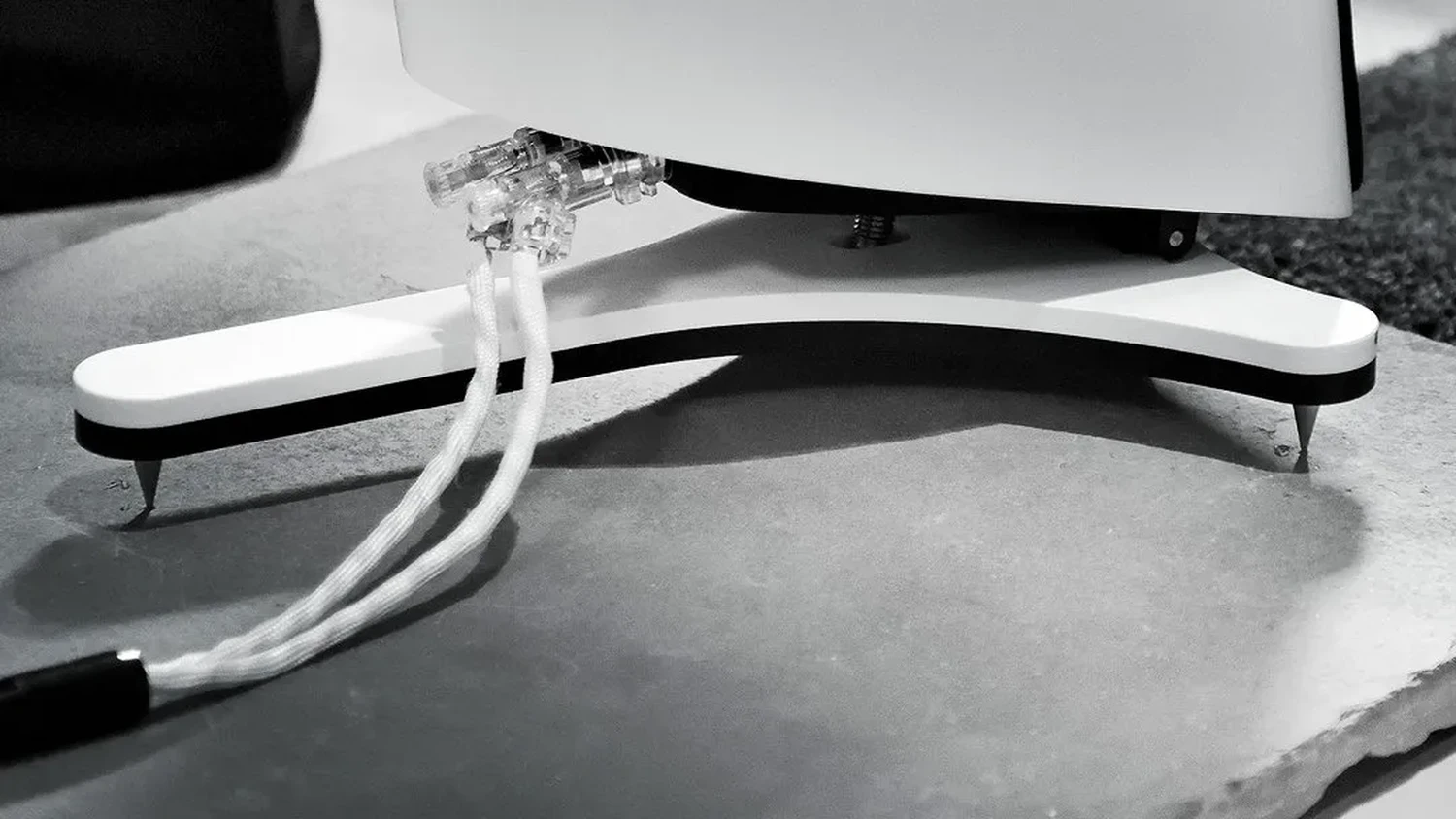 Finition et pieds Pristine white, câbles d’alimentation fournis, hors câbles haut-parleur et modulation en revanche