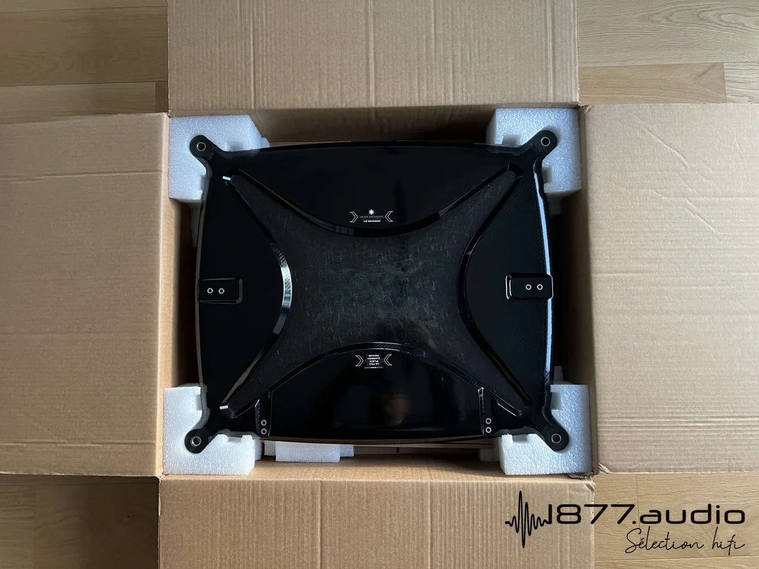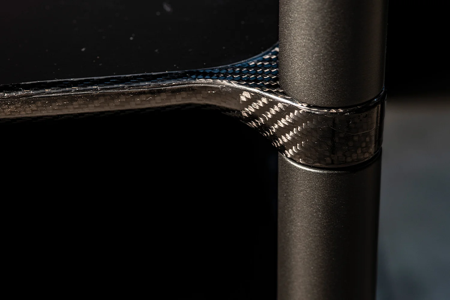Une étagère structurelle dans laquelle les pièces métalliques (pieds) sont directement reliées à la structure en carbone. Une étagère avec seulement 2 mm d’épaisseur, renforcée avec de la fibre de carbone unidirectionnelle et un noyau structurel pour garantir une capacité de charge sans compromis. Le panneau supérieur est un sandwich de 3 mm composé de cinq matériaux avec deux couches d’aluminium à l’intérieur et est gravé au laser pour obtenir le logo REVOLUTION X.