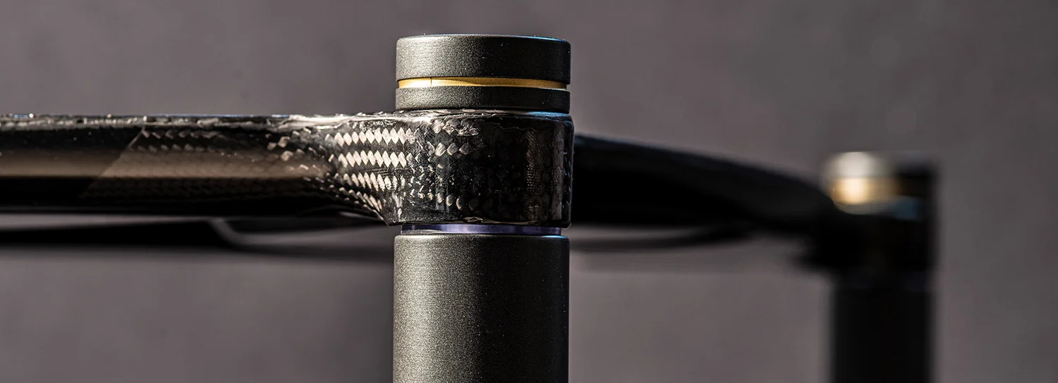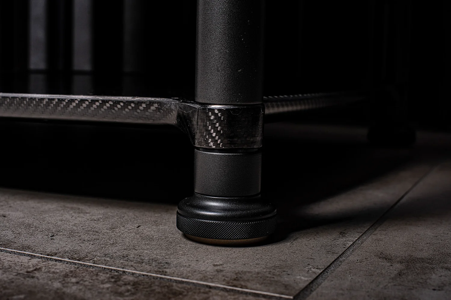 Modulaire, fabriquée en acier inoxydable tourné à partir d’une pièce solide. Étagère en fibre de carbone structurelle renforcée