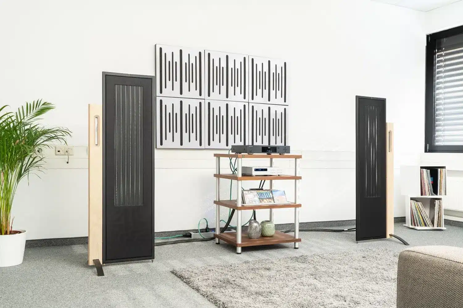 Chaque enceinte DIPTYQUE dp140 est composée d’une cellule de grave médium de 0,198m2 fonctionnant suivant le principe exclusif PPBM* breveté par la marque et d’un tweeter TW116 à ruban est monté dans un second panneau en bouleau de Finlande au profilé découplé pour la meilleure dispersion possible des hautes fréquences. Le filtre est quant à lui réalisé grâce à une self à air de forte section, des condensateurs polypropylène avec une structure en étain et des résistances non selfiques. La structure mécanique en sandwich du panneau est extrêmement rigide et garantit l’absence de coloration.