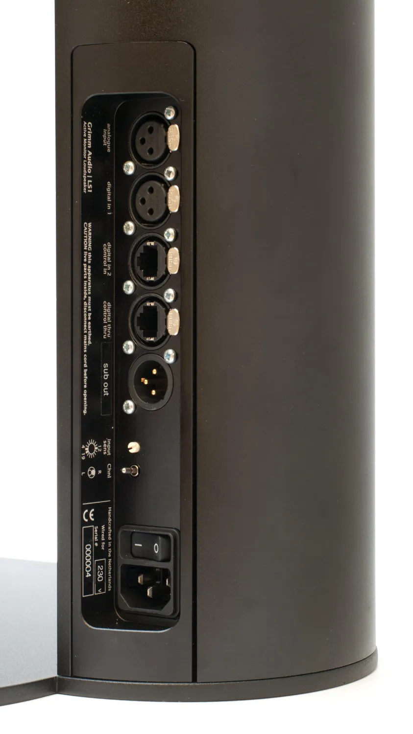L’enceinte GRIMM AUDIO LS1a intègre un traitement numérique du signal (DSP), des convertisseurs (DAC et ADC) et des amplificateurs de qualité dans l’un des pieds des haut-parleurs. Le système LS1a n’est donc pas seulement un haut-parleur, mais un système audio complet qui n’a besoin que d’une ou plusieurs source.s externe.s.