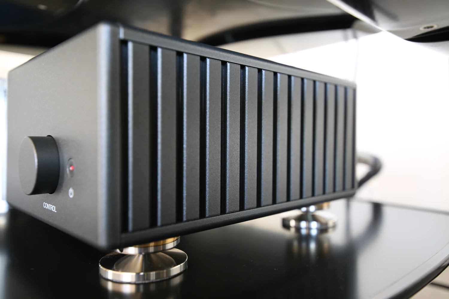 Le design de l’Equinox marque une évolution vers une esthétique résolument contemporaine. Son châssis est usiné dans un bloc de métal massif et intègre des renforts internes pour minimiser les résonances. Les pieds d’isolation sur mesure réduisent efficacement les vibrations et protègent le signal audio des perturbations mécaniques.