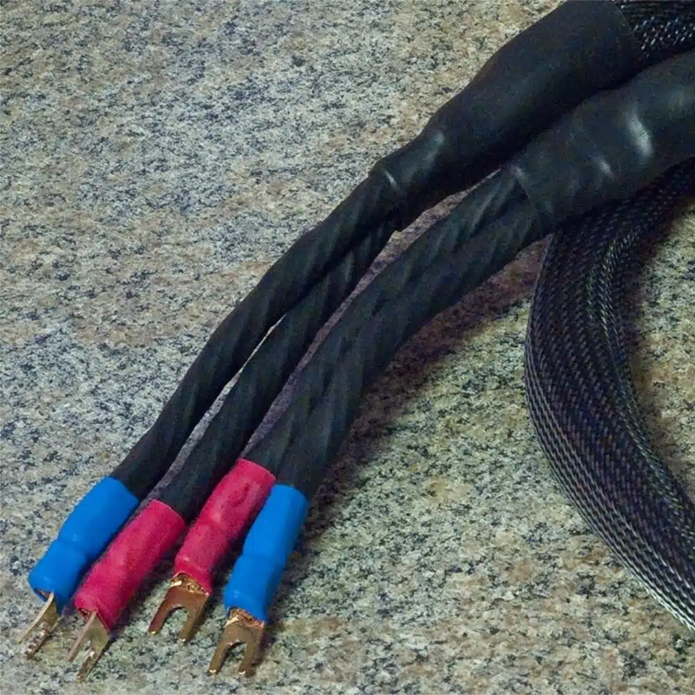 Câble haut-parleur KUBALA SOSNA Elation! speaker avec des connecteurs fourche à chaque extrémité.