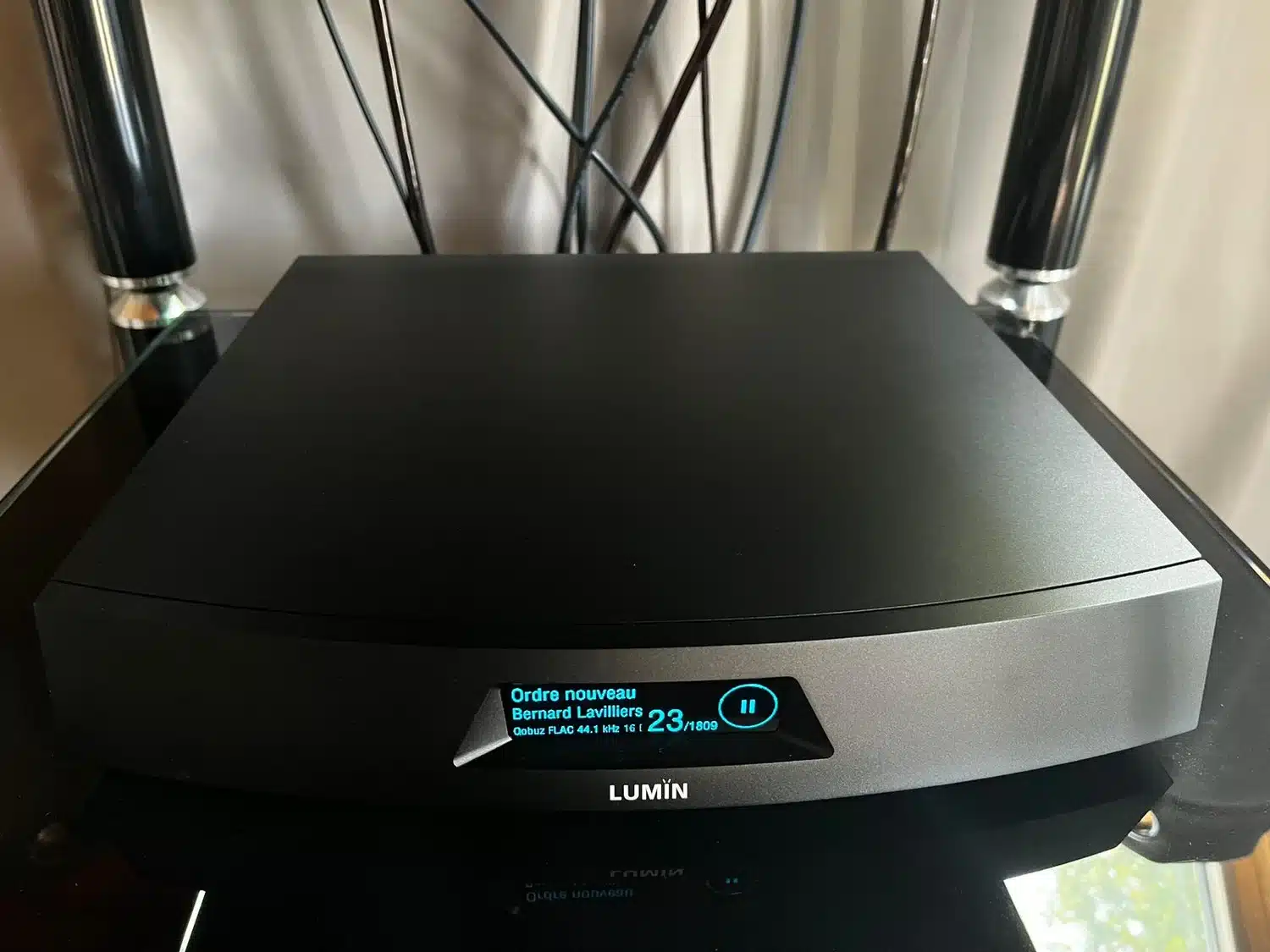 Le LUMIN U2 est un streaming transport de nouvelle génération axé sur une qualité audio pure. Il présente un processeur tout neuf capable de prendre en charge des résolutions audio allant jusqu’à DSD512 et PCM768. Le dispositif propose une sortie USB dédiée, une alimentation linéaire, une connectivité fibre optique pour une isolation contre le bruit numérique du réseau, ainsi que des fonctionnalités de mise à jour pour l’avenir. Il dispose de trois ports USB, dont un dédié à la sortie audio. Le châssis est fabriqué en aluminium CNC, offrant une rigidité structurelle améliorée et une meilleure protection contre les interférences. Le LUMIN U2 prend en charge divers formats audio, notamment MQA, DSD, FLAC, WAV, et offre une intégration native avec des services de streaming tels que TIDAL, Qobuz, Spotify et AirPlay. Il est également compatible avec l’application LUMIN, qui est saluée pour son interface conviviale. Ce transport bénéficie des avancées matérielles et logicielles introduites dans les modèles U2-Mini et T3 de la gamme LUMIN, notamment la technologie de réseau en fibre, l’alimentation linéaire et les régulateurs de tension à double étage. Dans l’ensemble, le LUMIN U2 est conçu pour offrir une expérience audio haut de gamme.